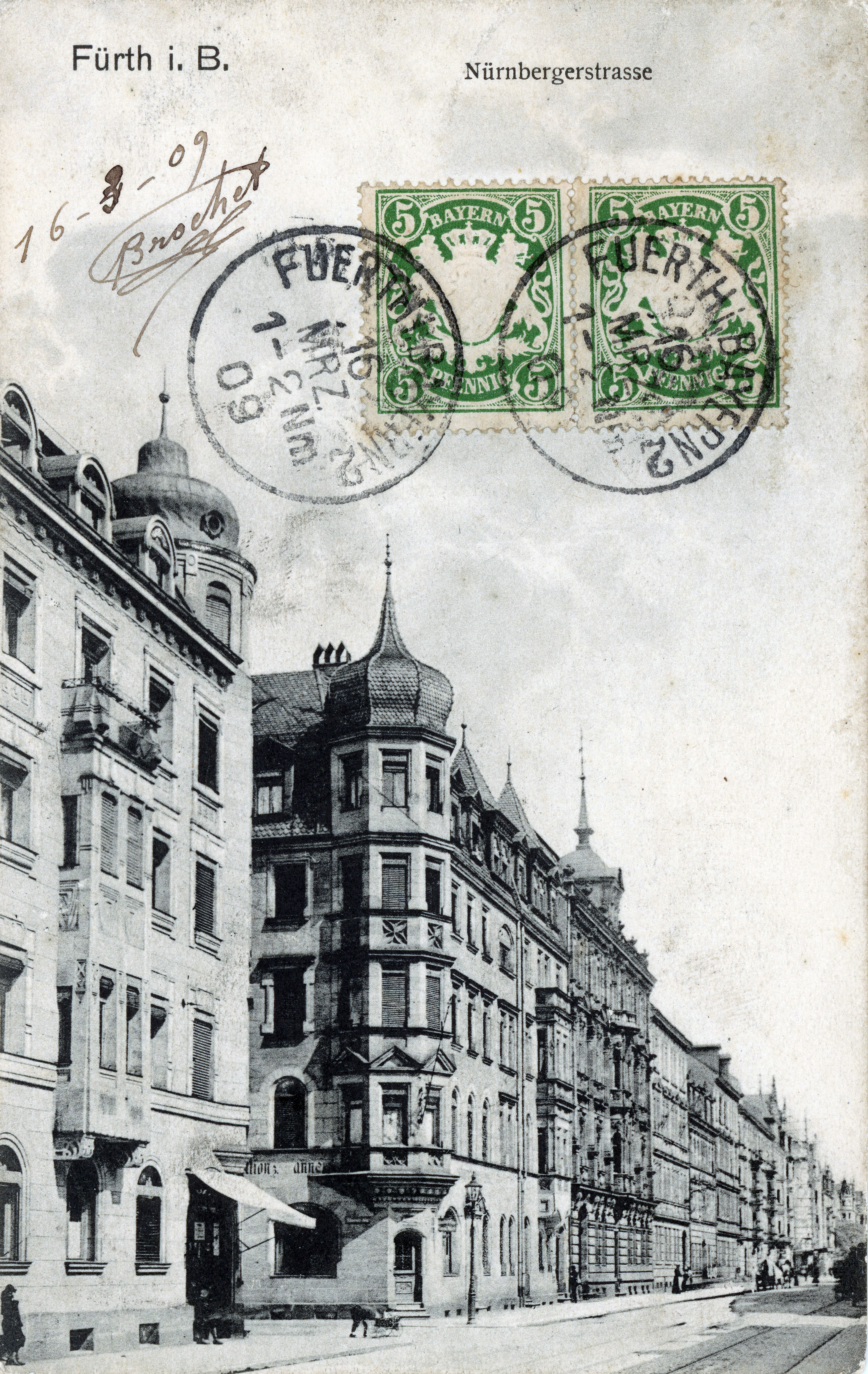 BeschreibungBlick in die Nürnberger Straße, Ecke Tannenstraße, gel. 1909