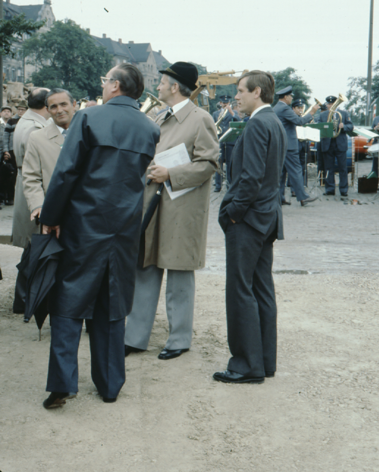 | Beschreibung | Baubeginn U-Bahn Fürth, Festakt an der Jakobinenstraße, 9. Juli 1979, im Bild Kurt Scherzer | ||