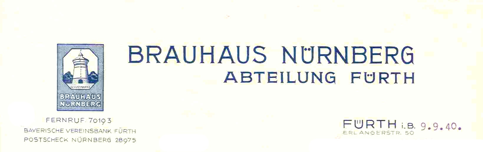 | Beschreibung | Historischer Briefkopf der Brauhaus Nürnberg Brauerei von 1940 | ||