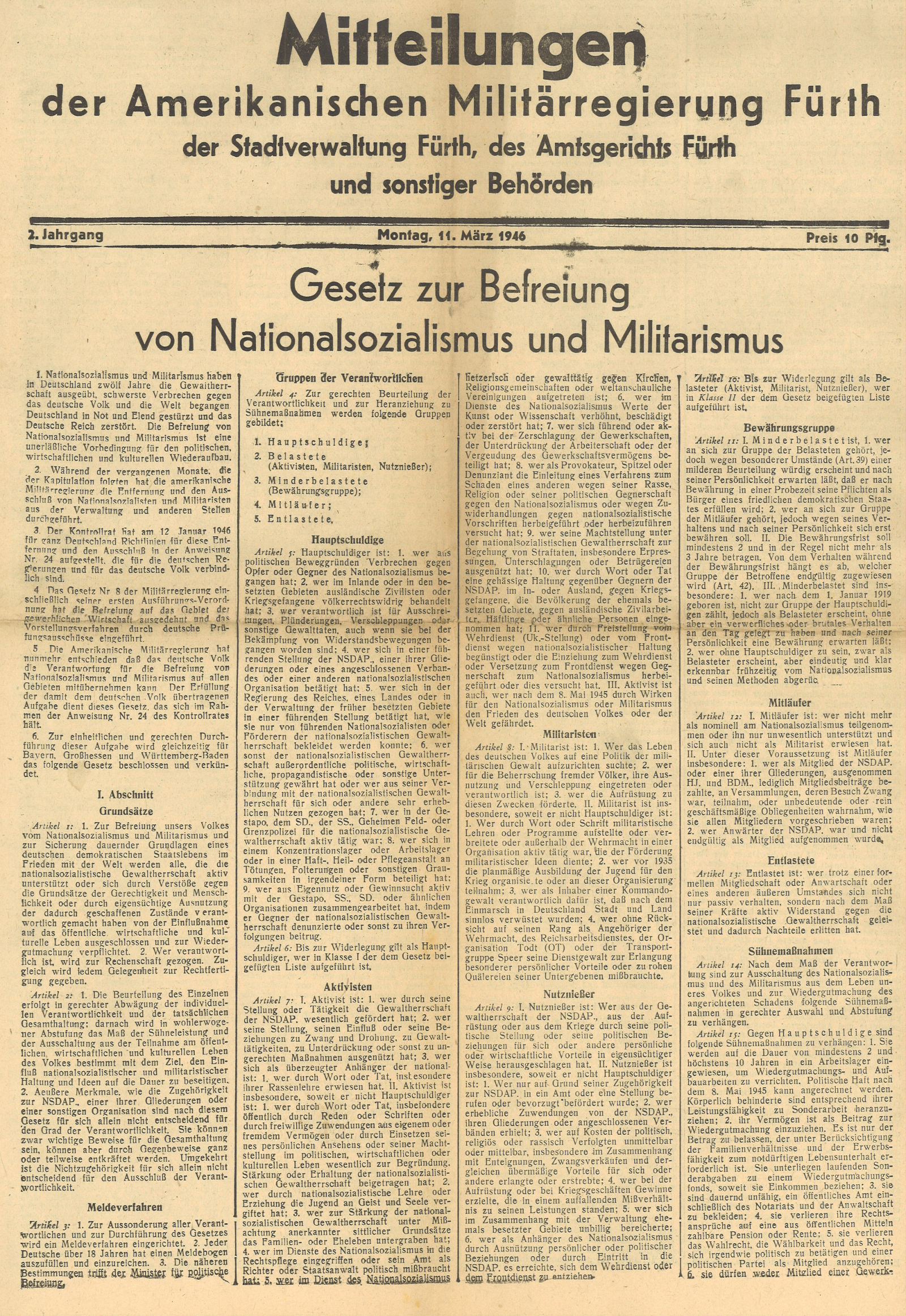 BeschreibungLokale Bekanntmachung des Entnazifizierungsgesetzes vom 5. März 1946