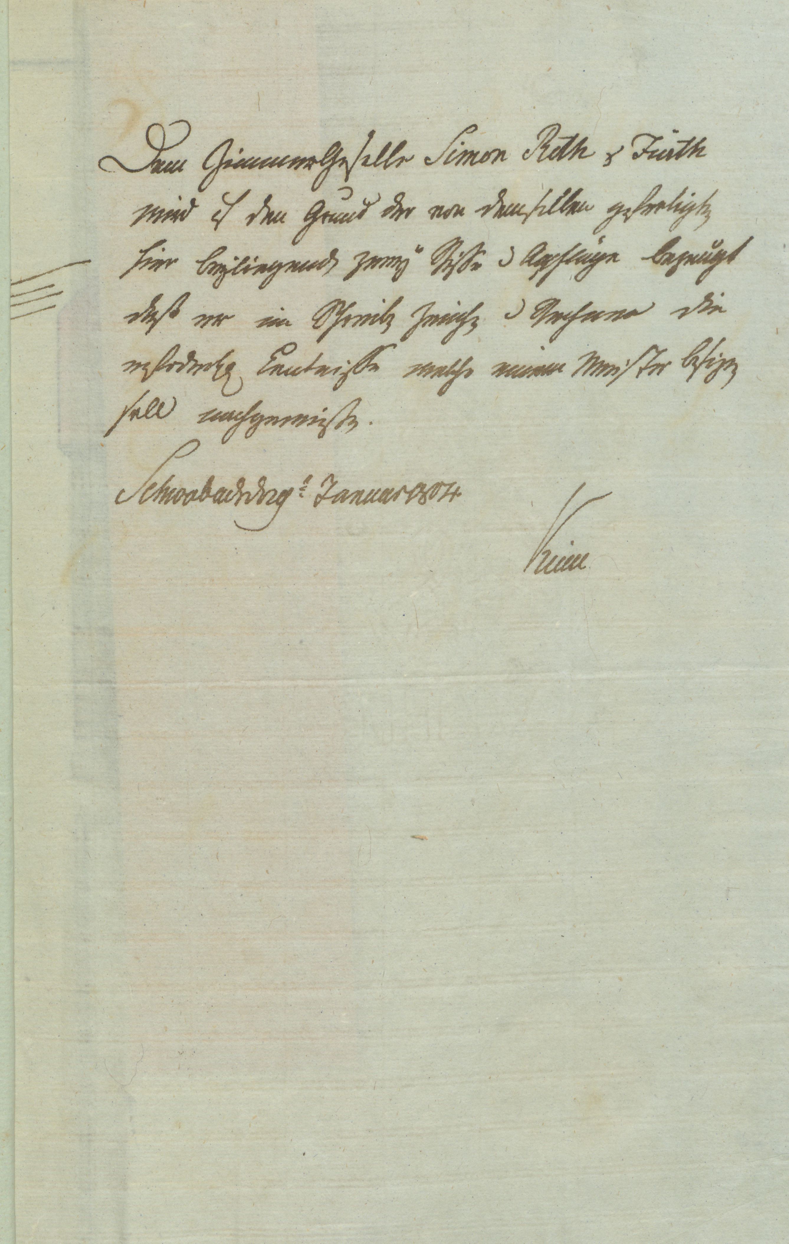 Prüfungsattest der Kgl. Bauinspektion Schwabach, Unterschrift Keim Erstellungsdatum: 29. Januar 1804<br>Lizenz: Bildlizenz-Stadtarchiv