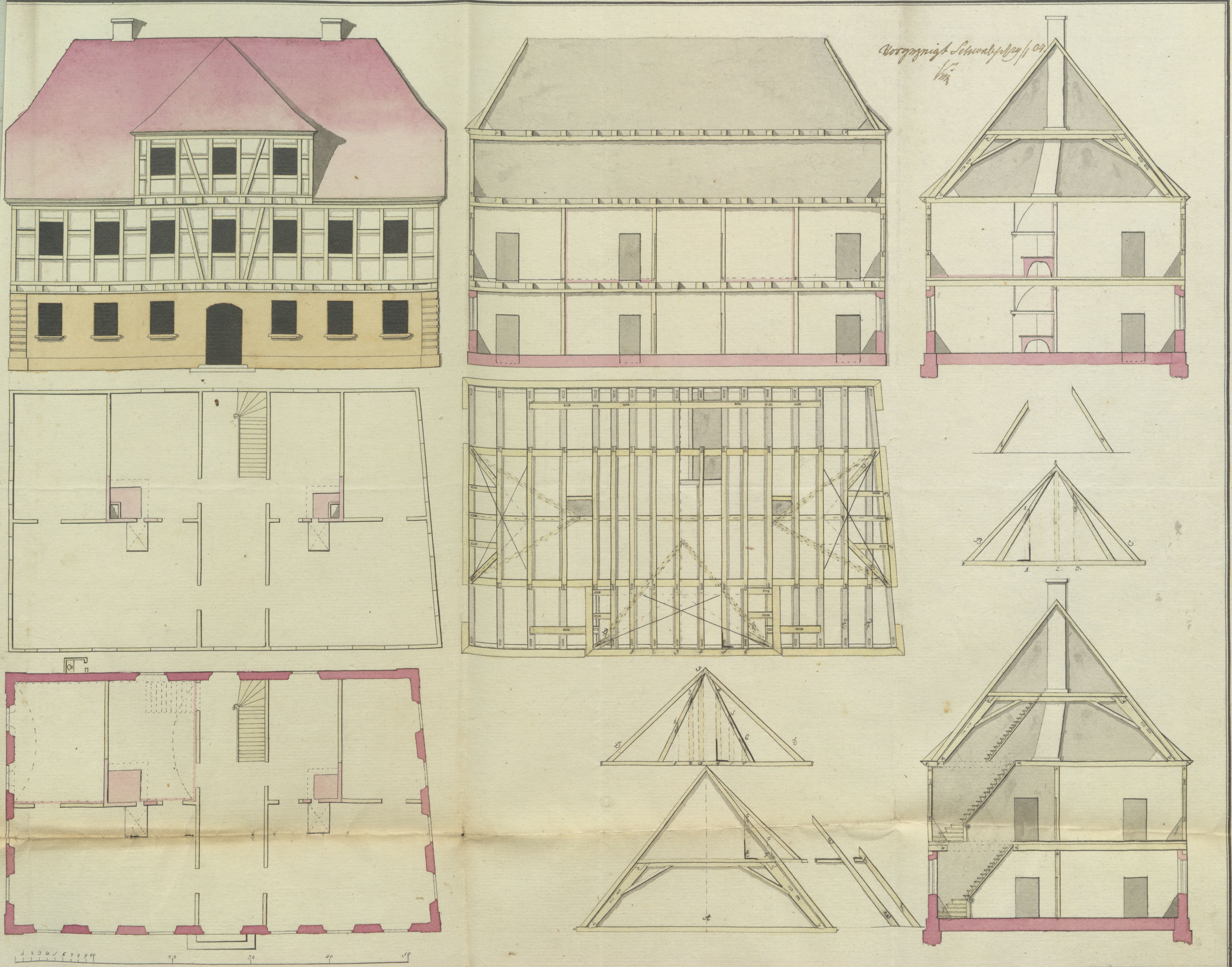 BeschreibungEntwurfsplan von Simon Roth mit Sichtvermerk des Bauinspektors Keim