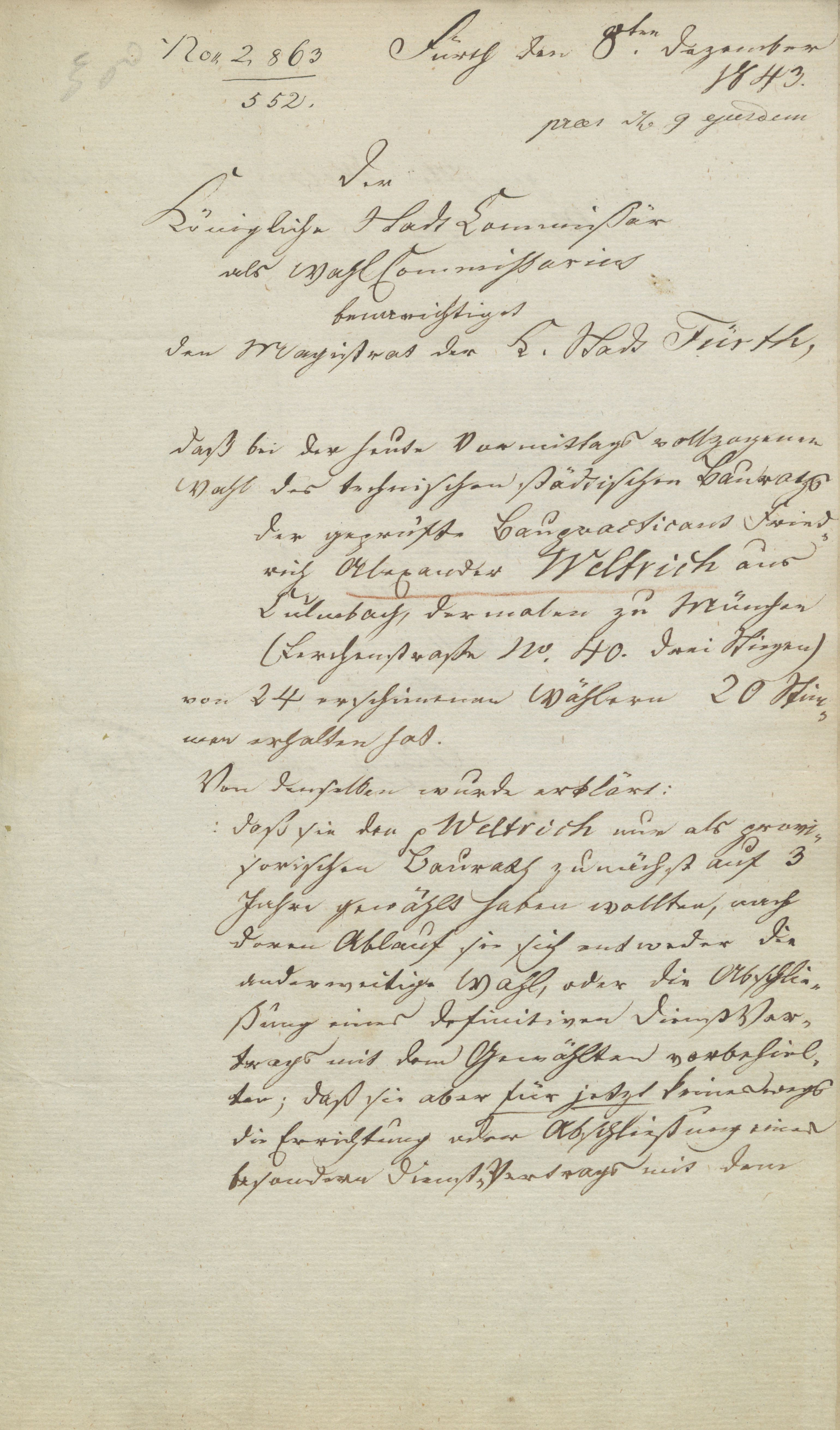 | Dateiinfo (Bild-Unterschrift und Info-Box, automatisch erstellt) | Ergebnis der Bauratswahl vom 8. Dezember 1843 (Schreiben Wellmer, S. 1) Erstellungsdatum: 8. Dezember 1843<br>Lizenz: Bildlizenz-Stadtarchiv | ||
