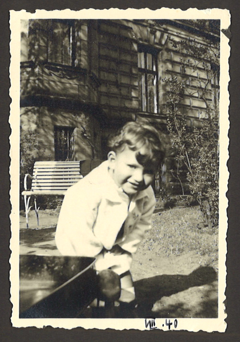 | Beschreibung | Rainer Appel im "unteren Garten" an der Südseite der Villa (Seite zur Gebhardtstraße). August 1940 | ||