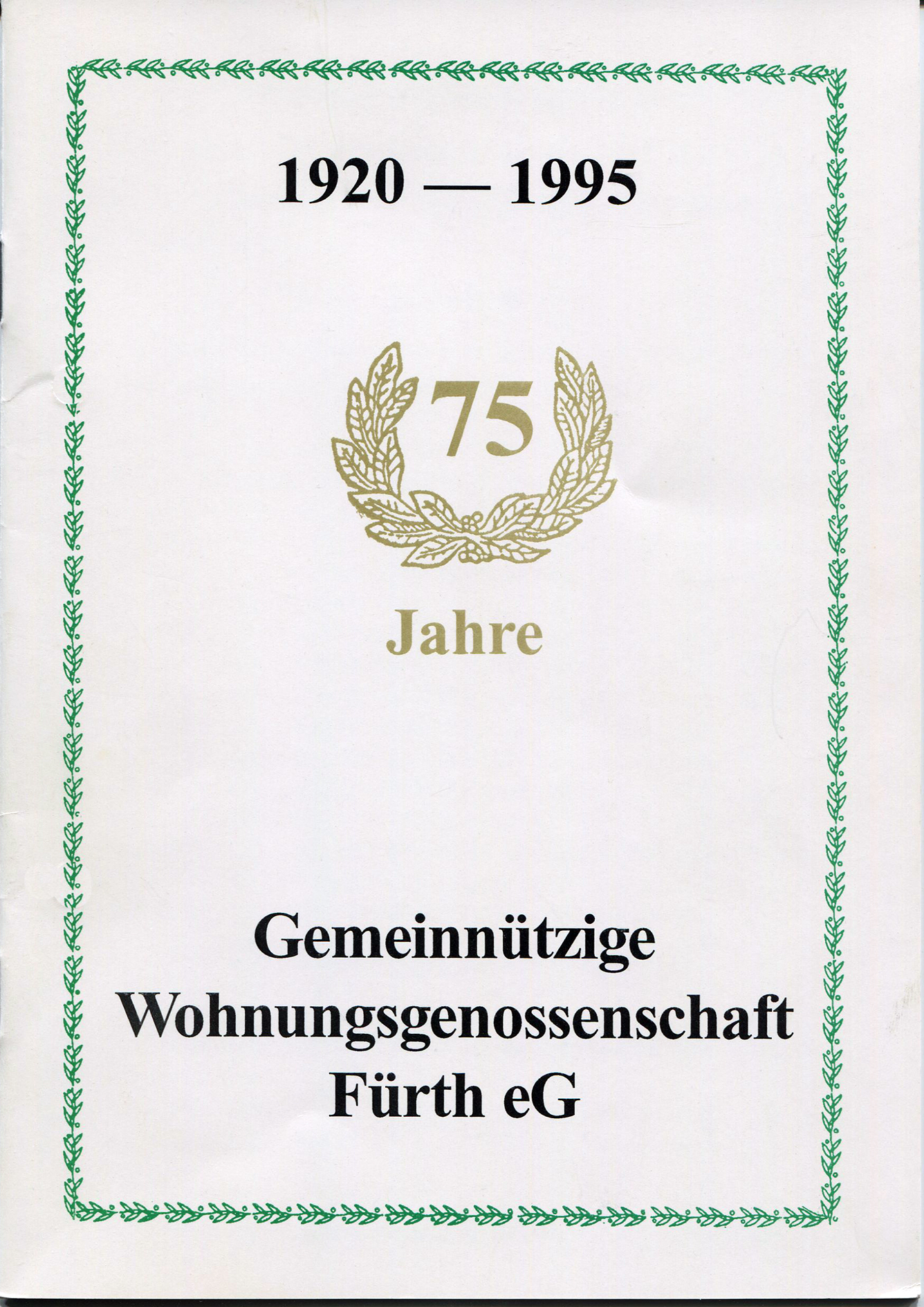 Titelblatt: Gemeinnützige Wohnungsgenossenschaft Fürth eG 1920 - 1995 (Broschüre) Urheber: Wohnungsgenossenschaft Fürth Oberasbach eG<br>Erstellungsdatum: 1995<br>Lizenz: cc-by-sa-3.0