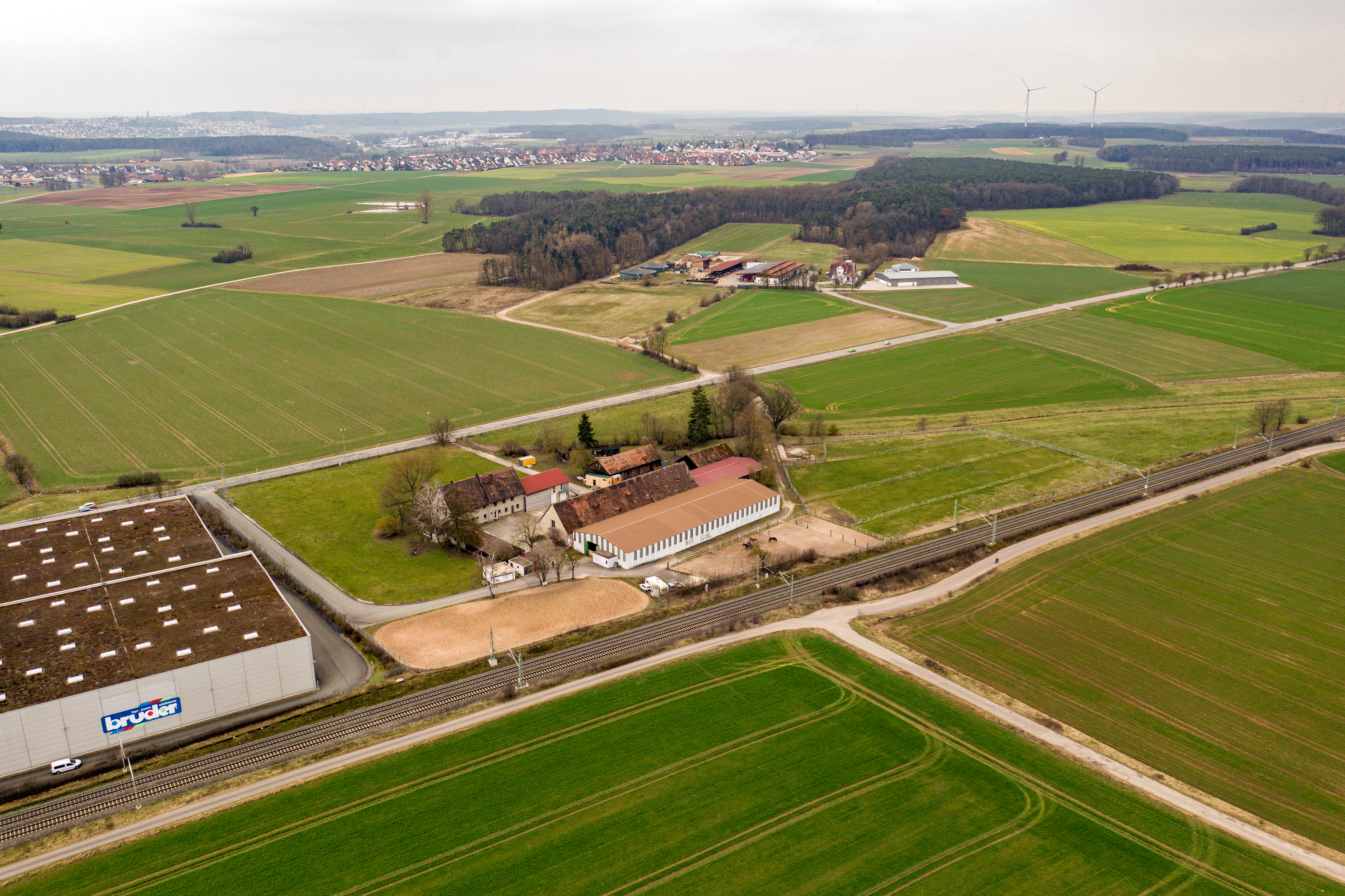 | Beschreibung | Der ehem. Baunerhof Gut Zennholz, heutiger Sitz der Pferdesportgemeinschaft Fürth e. V., im Hintergrund nach den Anwesen bis zum Wald der ehem. Schießplatz der Wehrmacht und US. Army, Mrz 2021 | ||