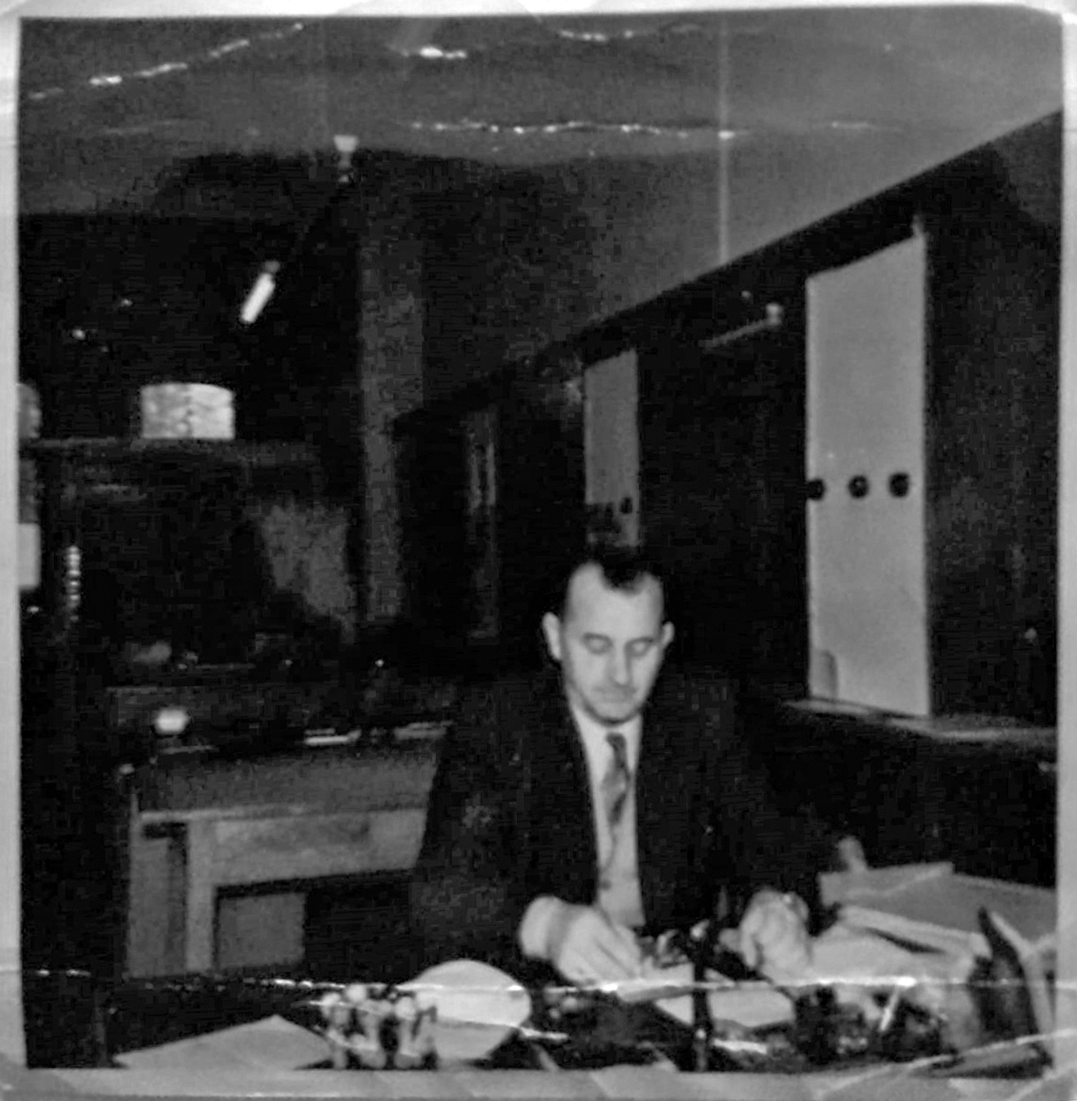 Fritz Hopf 1958 an seiner Arbeitsstelle im Arbeitsamt Erlangen Urheber: Familie Hopf<br>Lizenz: cc-by-sa-3.0