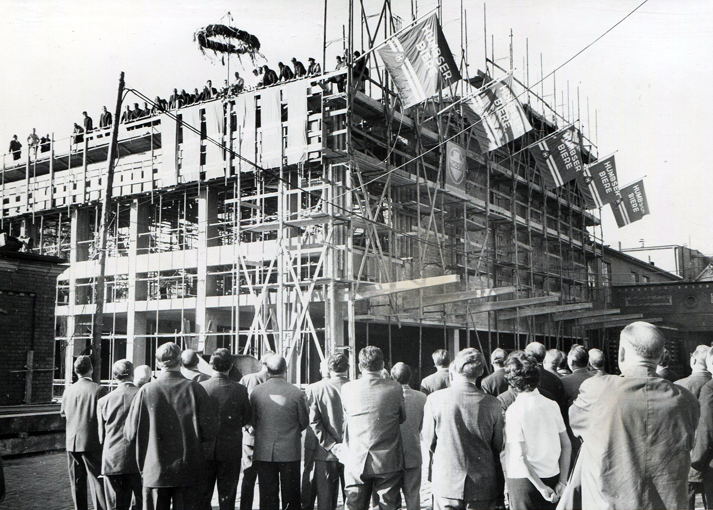 Richtfest auf dem Gelände der Brauerei Humbser-Geismann, ca. 1970 Urheber: unbekannt<br>Erstellungsdatum: 1970<br>Lizenz: cc-by-sa-3.0