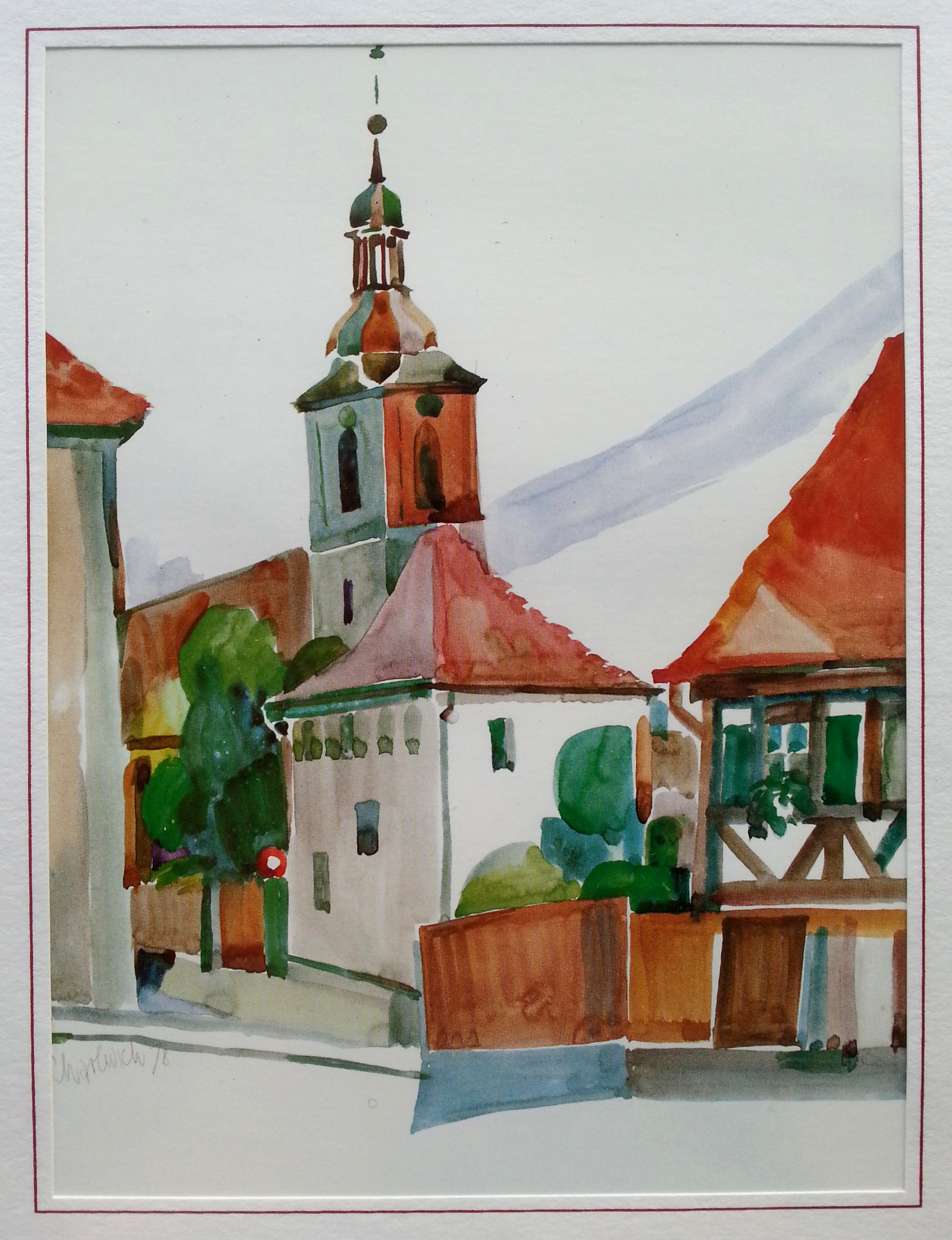 Karl-Heinz Wich: "Zirndorf", Kunstdruck (im Original Aquarell). Signiert mit ... Karl-Heinz Wich: "Zirndorf", Kunstdruck (im Original Aquarell). Signiert mit CharlWich 78, Kunstmappe des Lions Club Fürth, 1983<br>Urheber: Karl-Heinz Wich<br>Erstellungsdatum: 1978<br>Lizenz: copyright