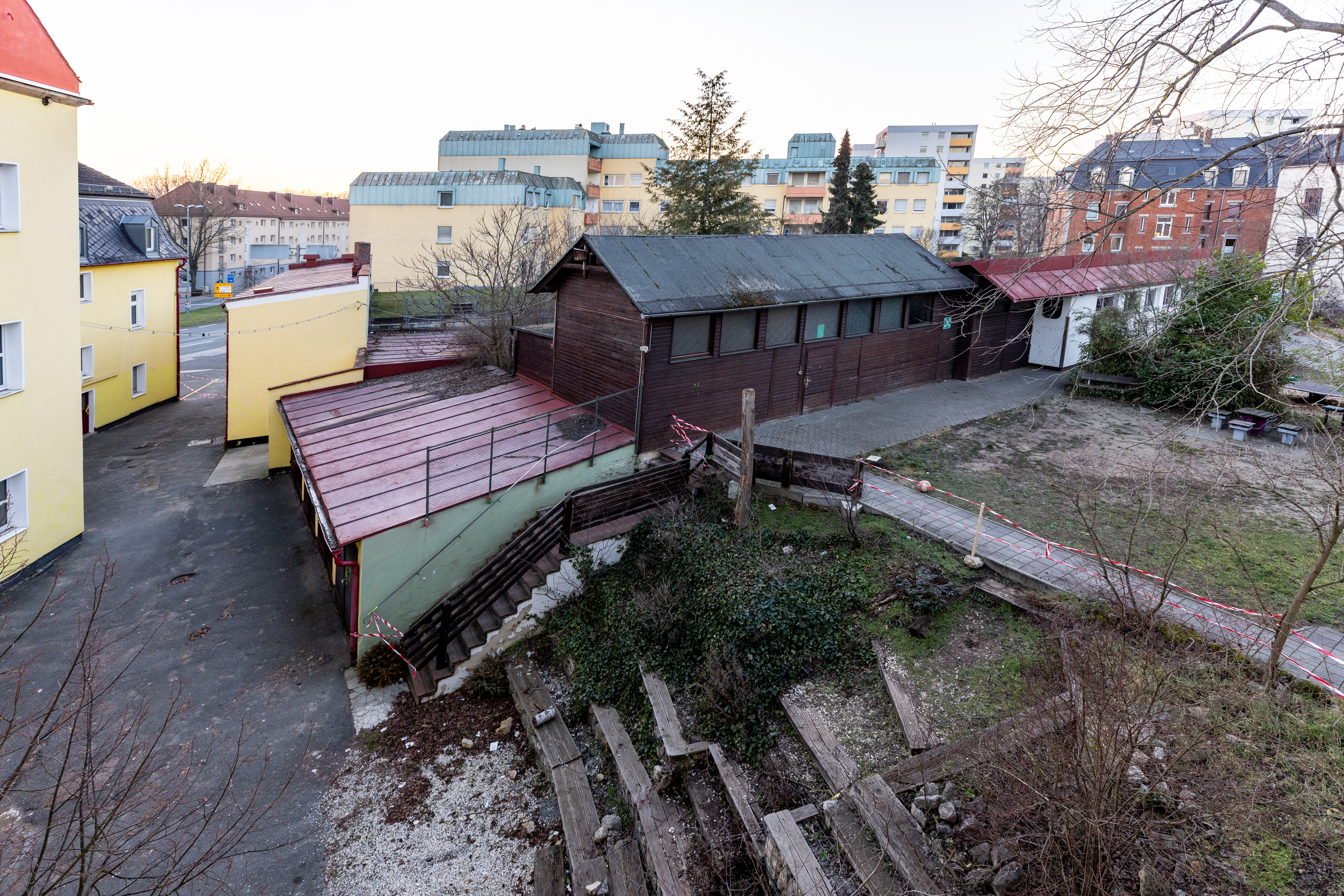 | Beschreibung | Ehem. Kinderheim St. Michael in der Poppenreuther Straße 13 - Hinterhof mit Garagen und Wäscherei, Feb 2023 | ||