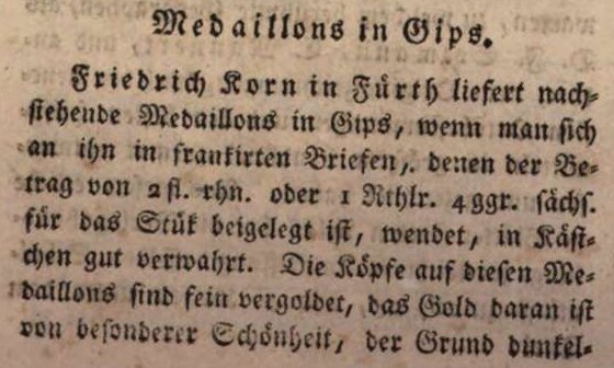 | Beschreibung | Zeitungsanzeige von Friedrich Korn, Januar 1804 | ||