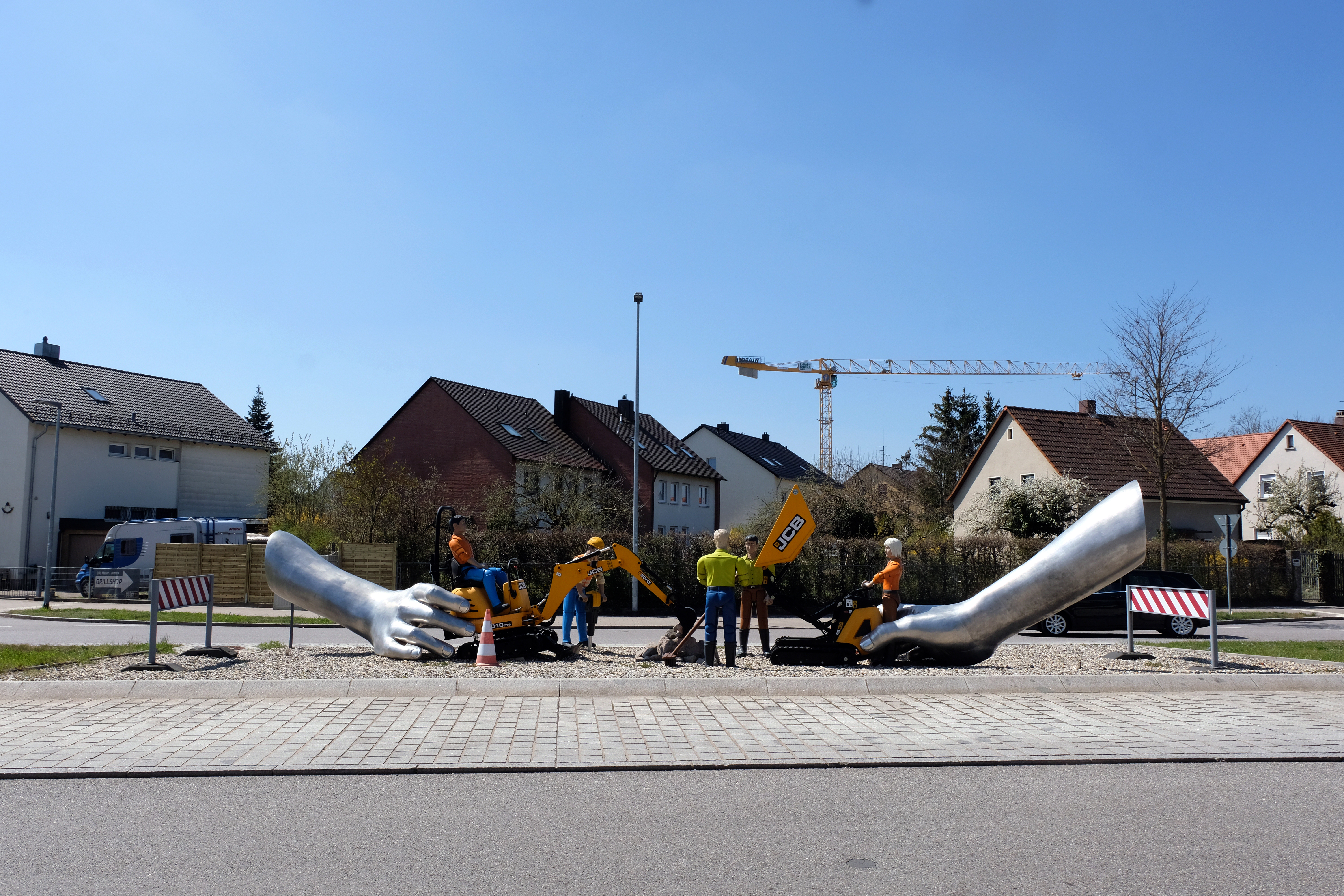 BeschreibungKunstwerk von Lorenzo Quinn am Kreisverkehr Bernbacher Straße, April 2021