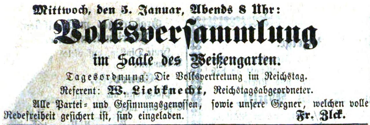 | Beschreibung | W. Liebknecht im Weißengarten, Januar 1876 | ||