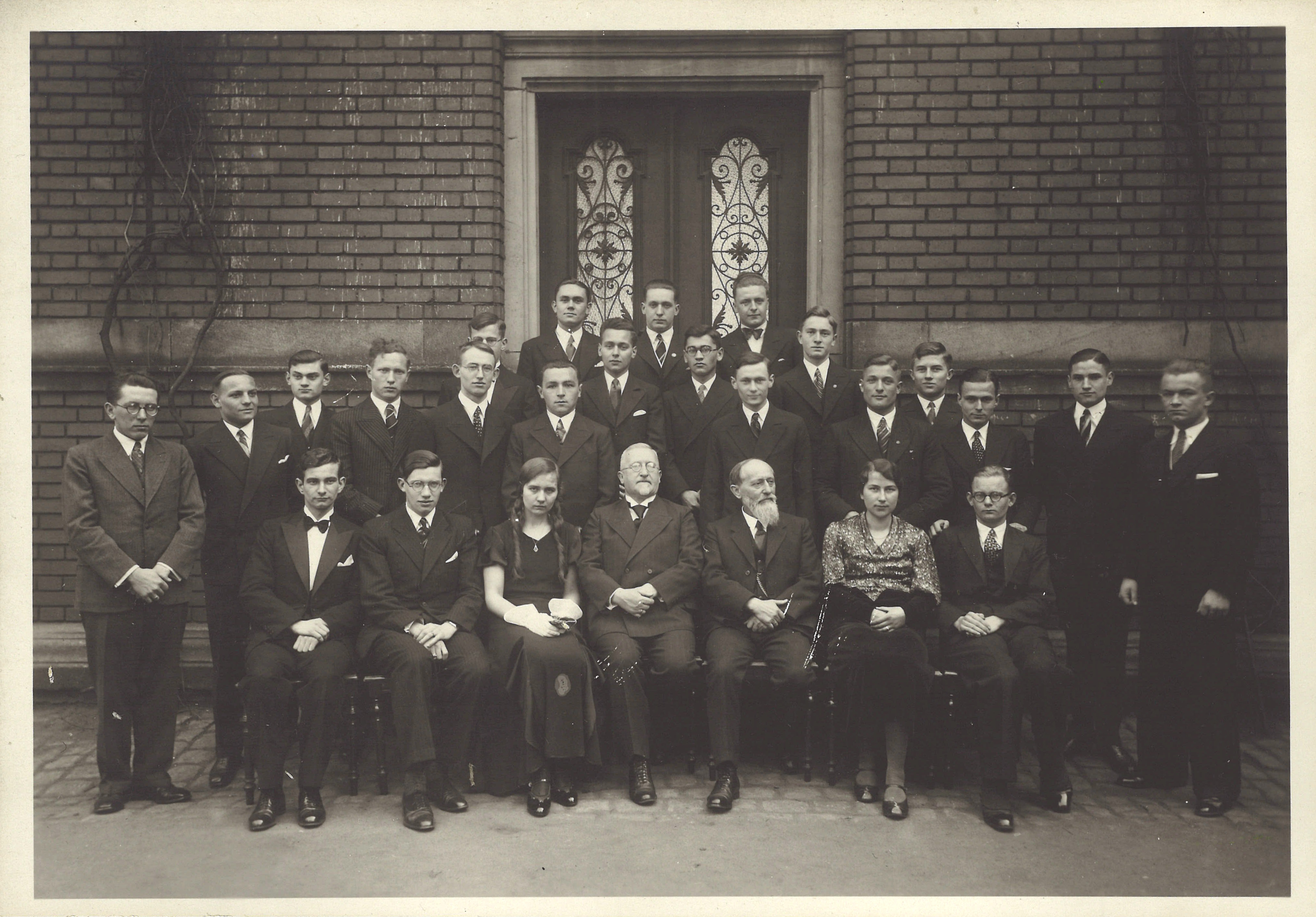BeschreibungKlassenfoto eines Jahrgangs des Humanistischen Gymnasiums, vermutlich vor der Rückseite des Schulgebäudes. Schüler Otto Lippert (Sohn von Wolfgang Lippert) in der mittleren Reihe, sechster von links. Vermutlich Abschlussklasse 1935. Original-Bildunterschrift: "Human. Gymnasium Fürth. April 28 / April 1935"