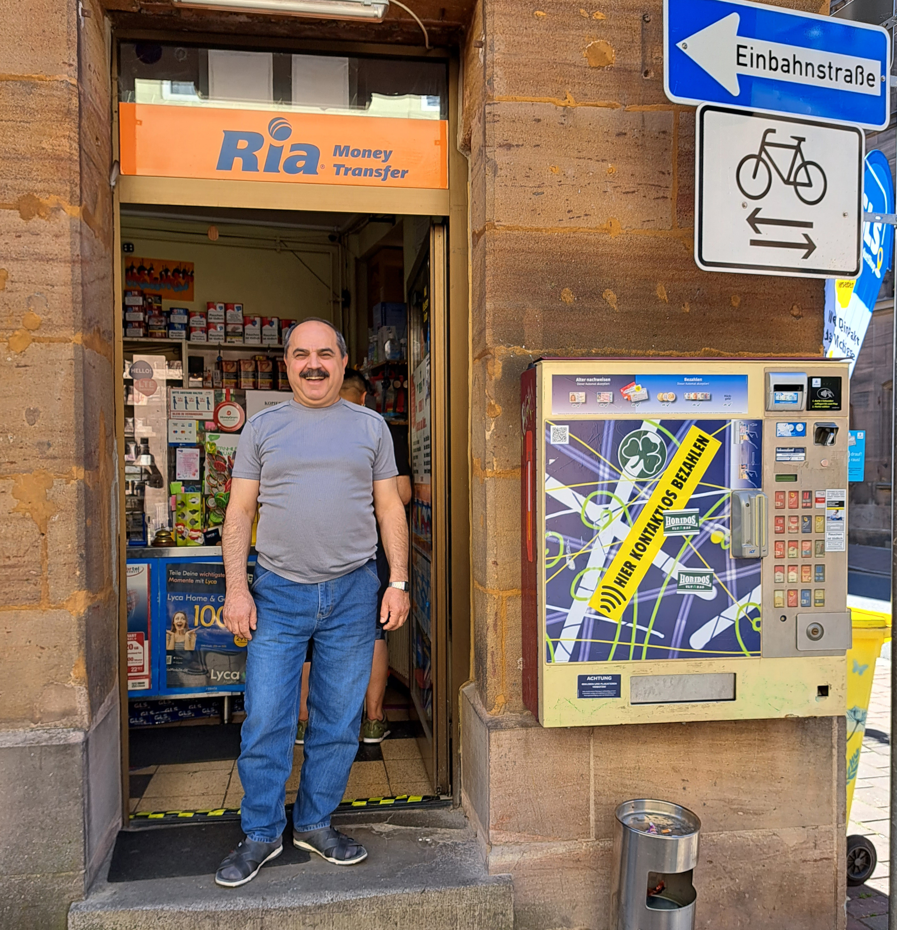 Mehmet Fitil vor dem Spätkauf Memo's in der Theaterstraße 11. Urheber: Alexander Mayer<br>Erstellungsdatum: 8. September 2023<br>Lizenz: cc-by-sa-3.0