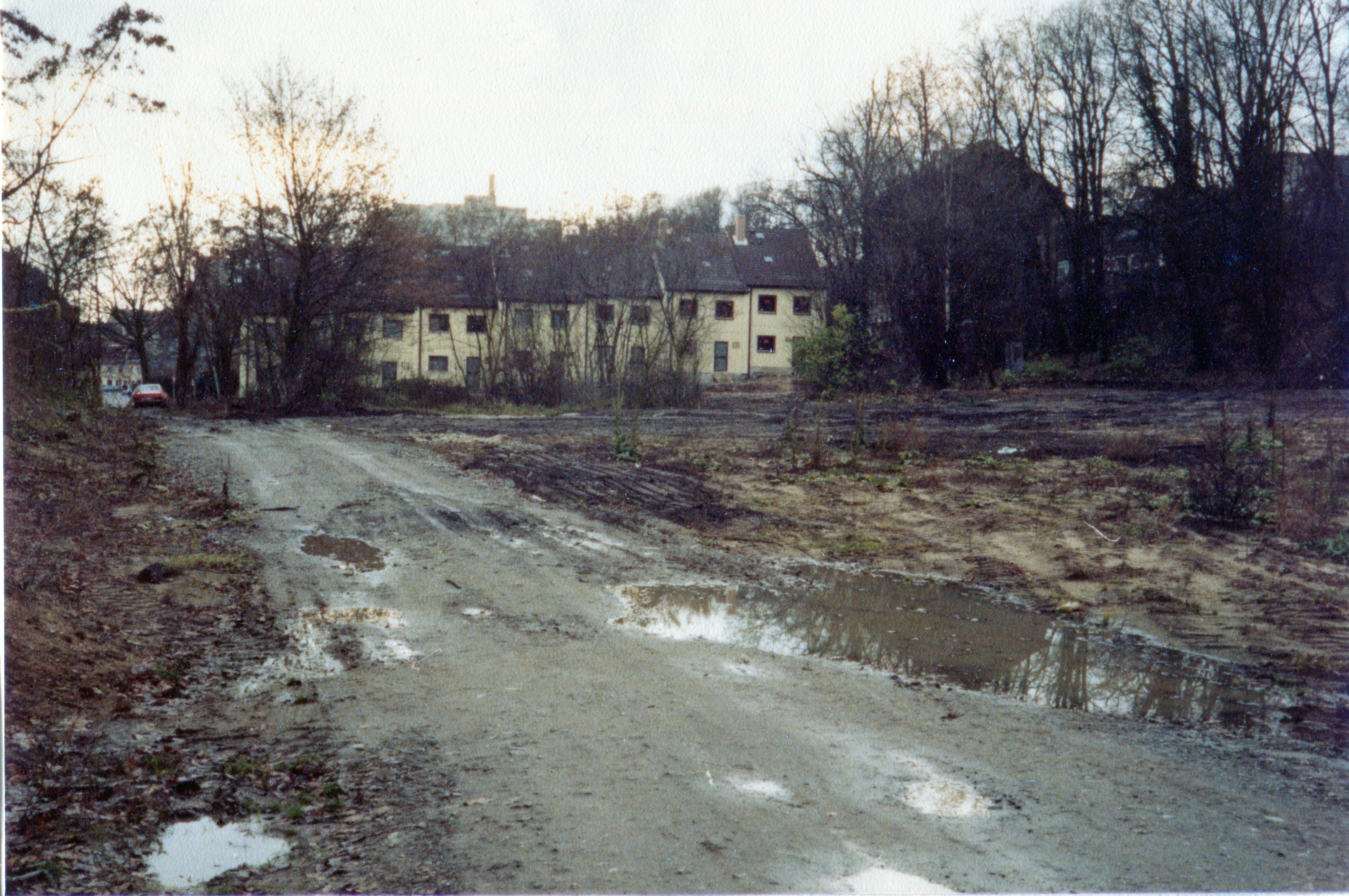 | Dateiinfo (Bild-Unterschrift und Info-Box, automatisch erstellt) | Blick von der Nordseite auf die fast fertigen sieben Reihenhäuser an der Ecke Vacher Straße und ... Blick von der Nordseite auf die fast fertigen sieben Reihenhäuser an der Ecke Vacher Straße und Jakob-Henle-Straße und dem von Baumaschinen gezeichnete Grundstück, das heute mit Teile des Grünerparks bebaut ist im Dezember 1979. Im Hintergrund das Klinikum Fürth und rechts hinter dem Baum Jakob-Henle-Straße 38.<br>Urheber: Klaus-Peter Schaack<br>Erstellungsdatum: Dezember 1979<br>Lizenz: cc-by-sa-3.0 | ||
