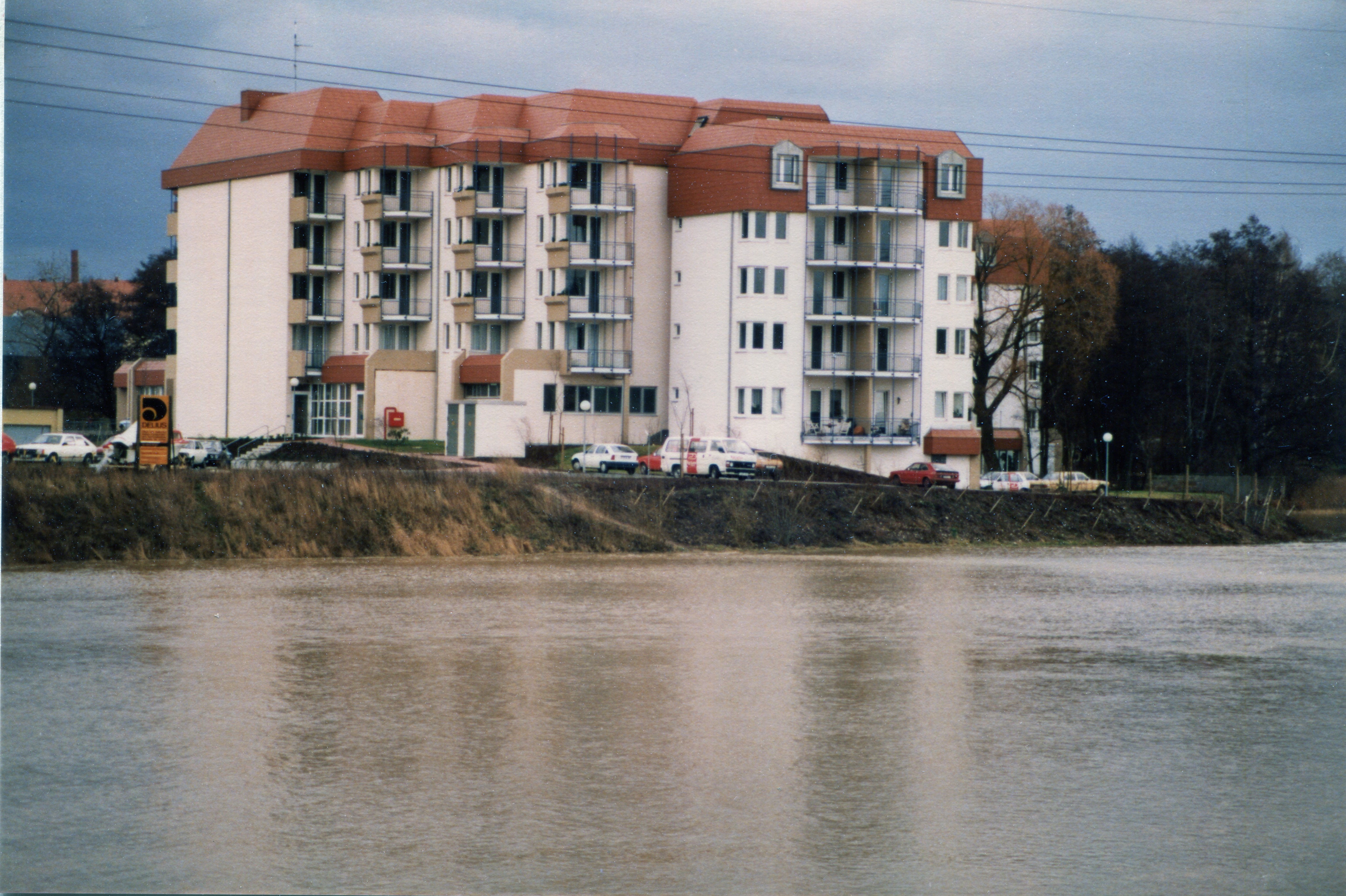 | Beschreibung | Hochwasser im Wiesengrund mit Seniorenresidenz Kursana im Dezember 1986 | ||