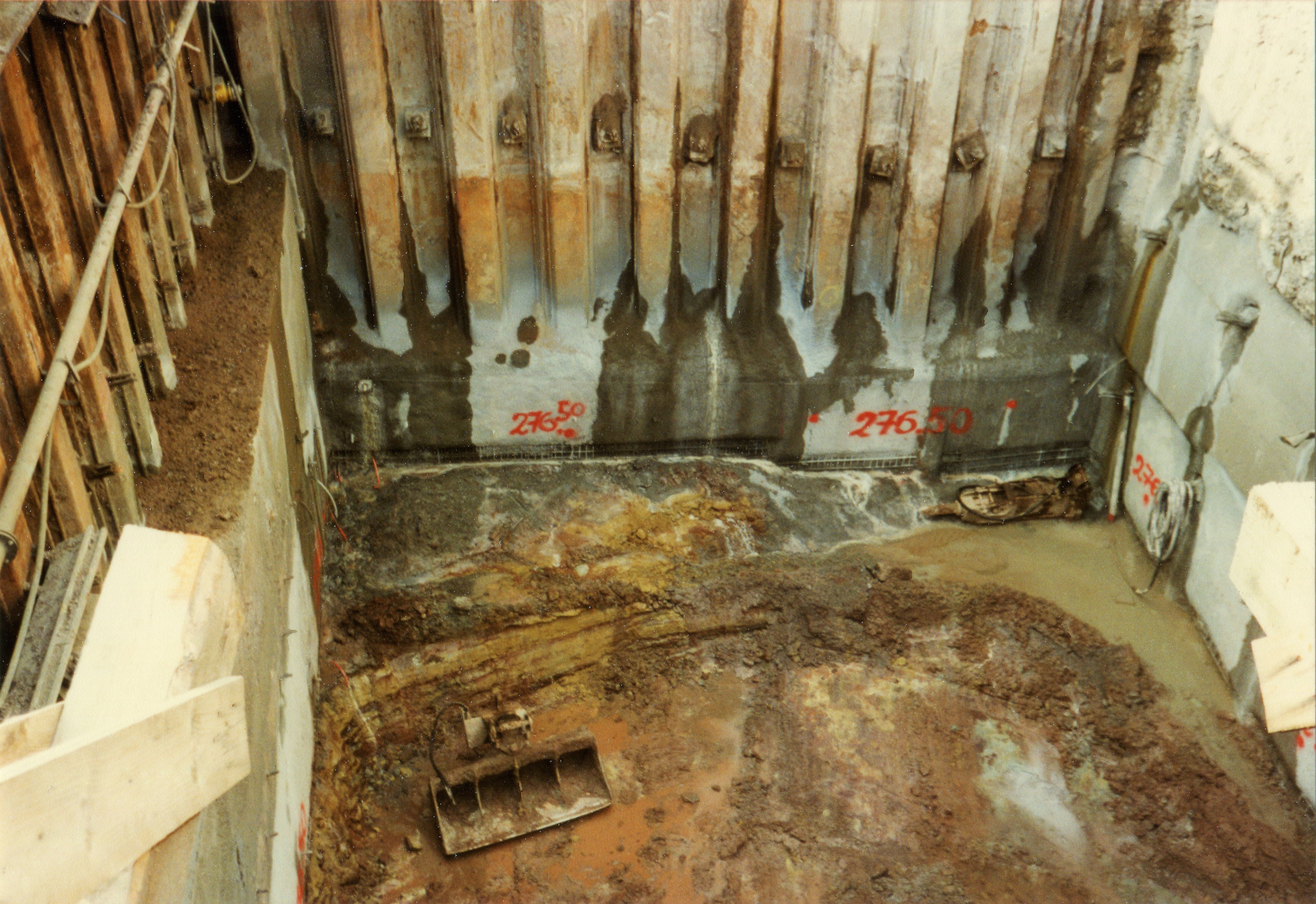| Beschreibung | Tiefbauarbeiten bis 14 Meter Tiefe für den U-Bahnhof Stadthalle im Oktober 1996 | ||