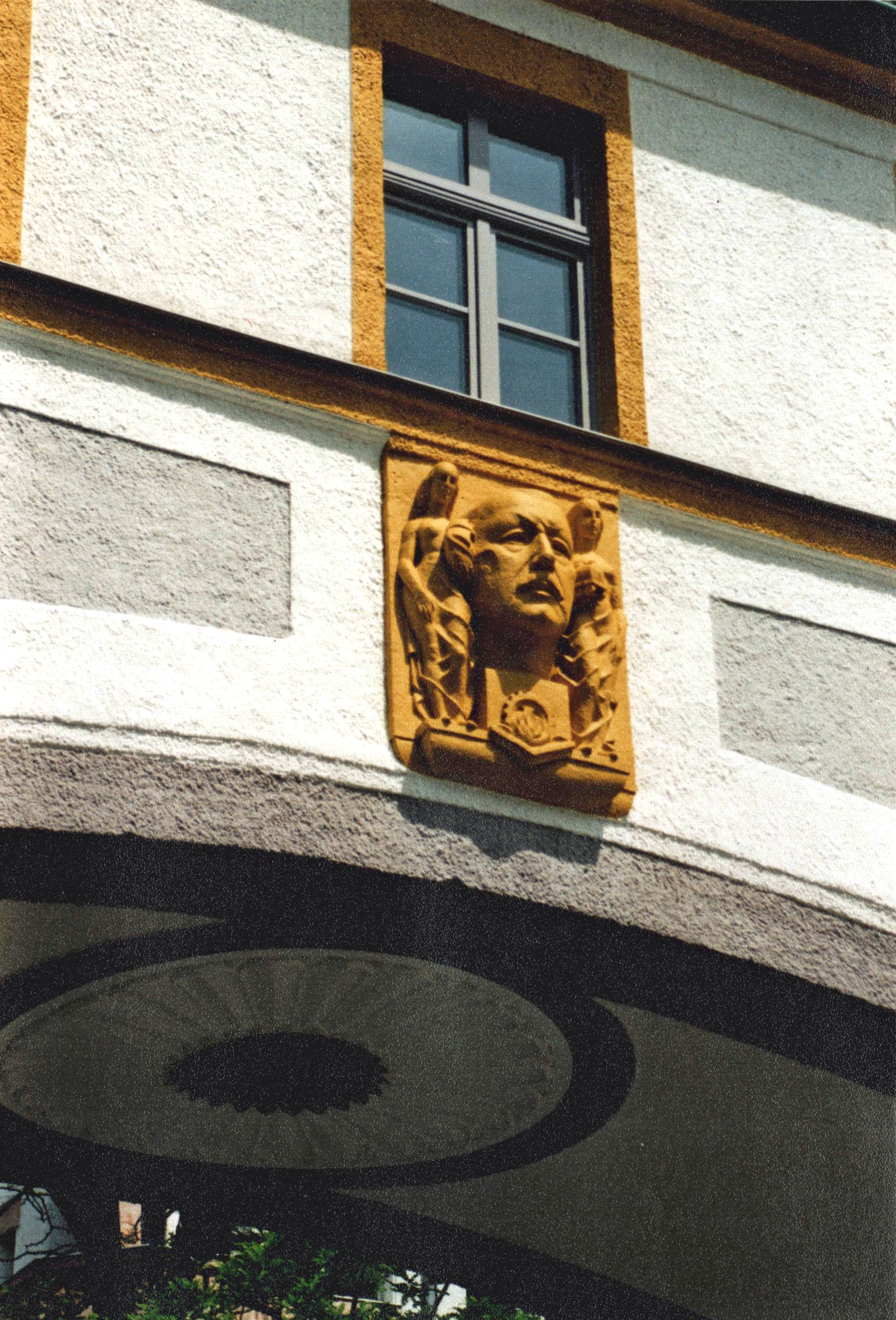 BeschreibungDetail am Verbindungstrakt der Fa. Brünn über die Badstraße, April 2002.