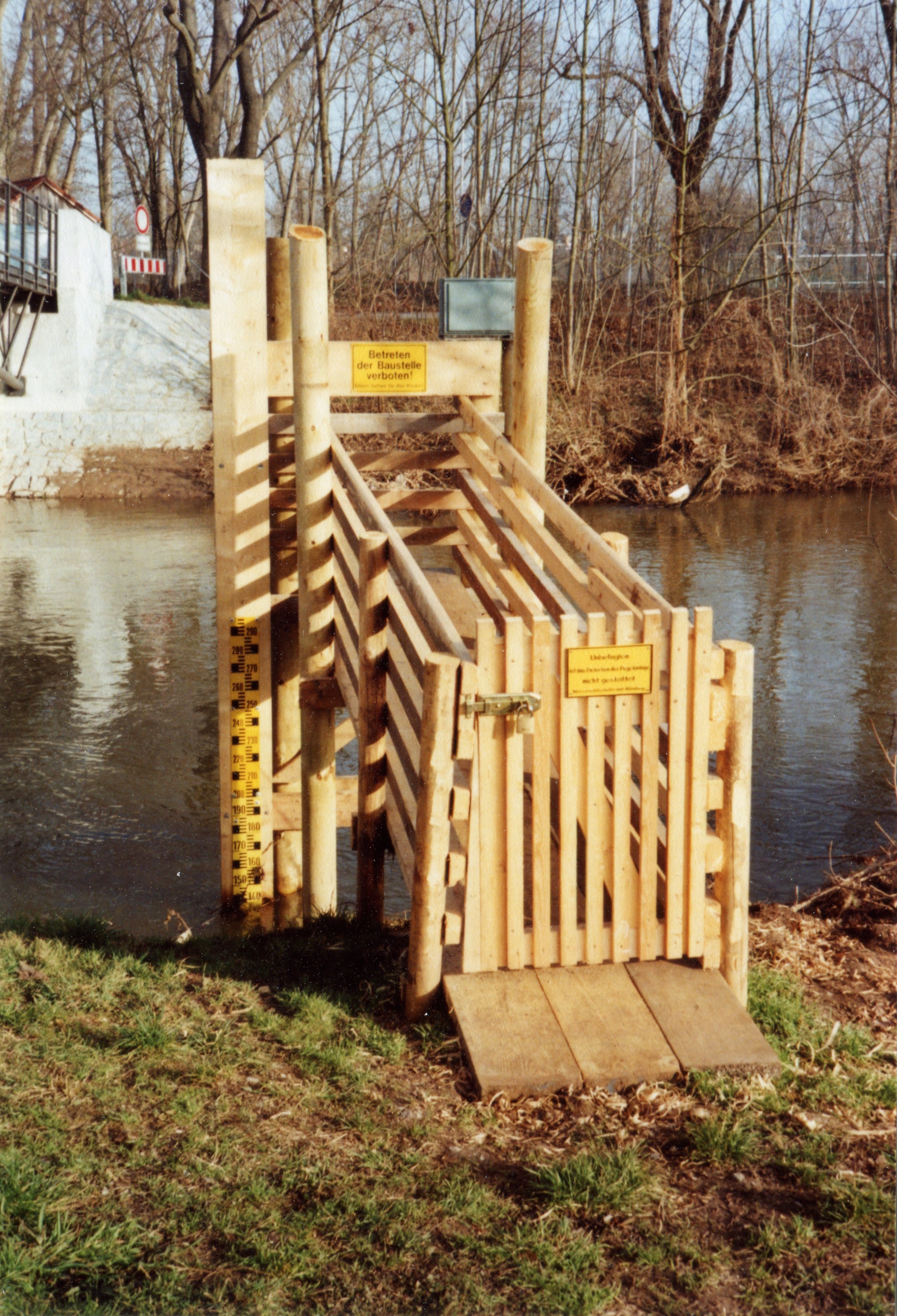BeschreibungTemporäre Behelfspegelanlage des Wasserverbands Knoblauchsland neben dem Käppnersteg, Februar 2007