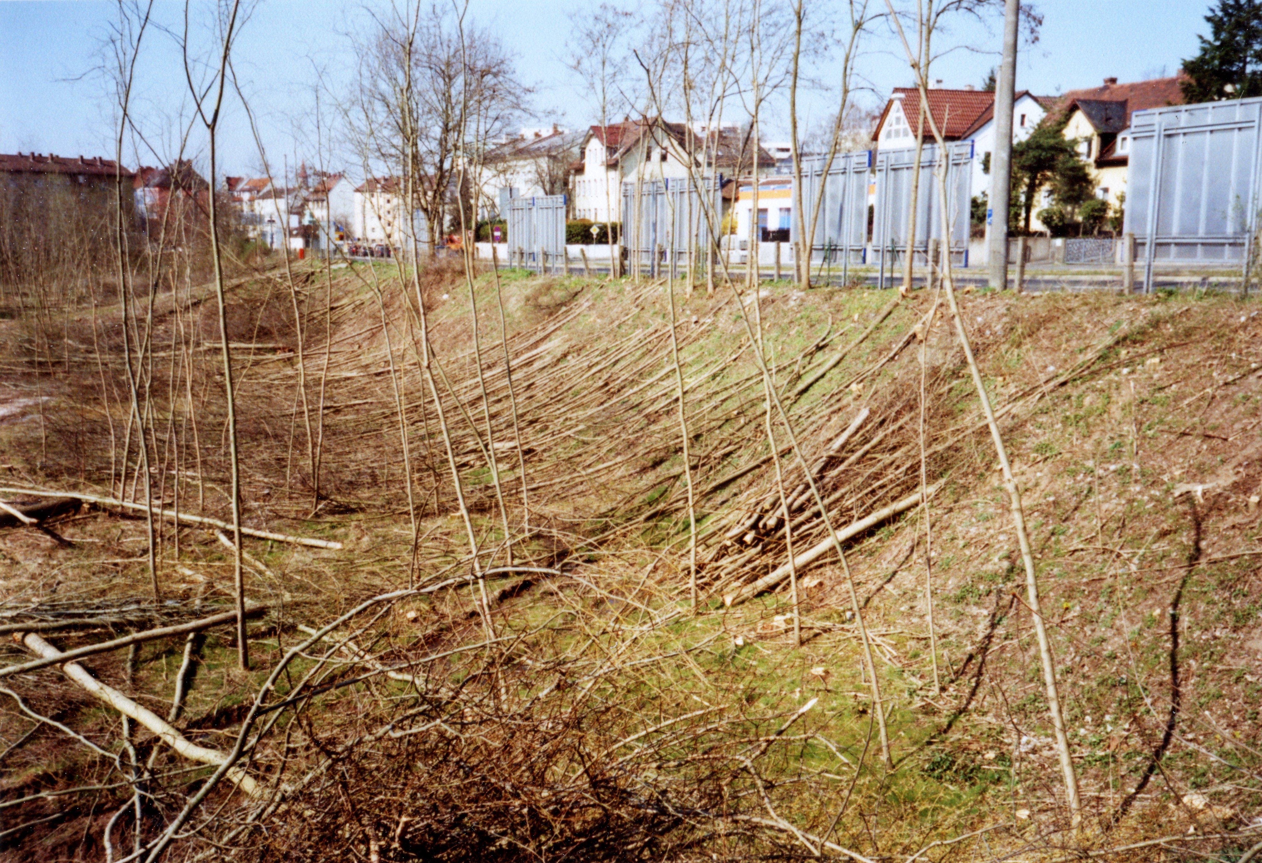 Beschreibungungenehmigte Abholzaktion am verwilderten Kavierlein Areal, rechts die Poppenreuther Straße mit Kinderheim St. Michael im März 2007