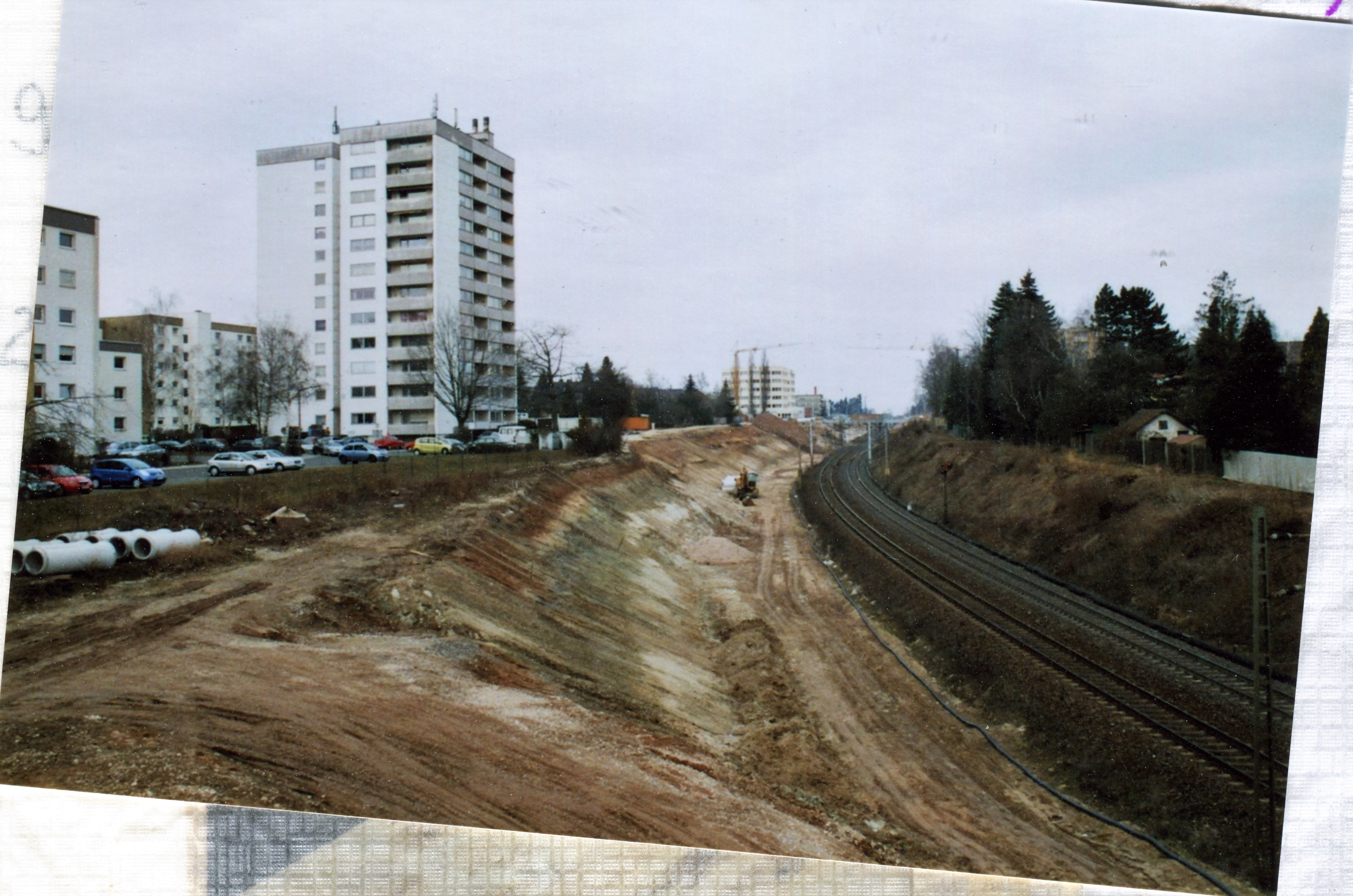 | Beschreibung | S-Bahn-Bauarbeiten für zwei neue Gleise, von der Brücke Cadolzburger Straße aus gesehen, März 2010 (mit Hochhaus Coseler Straße 33) | ||