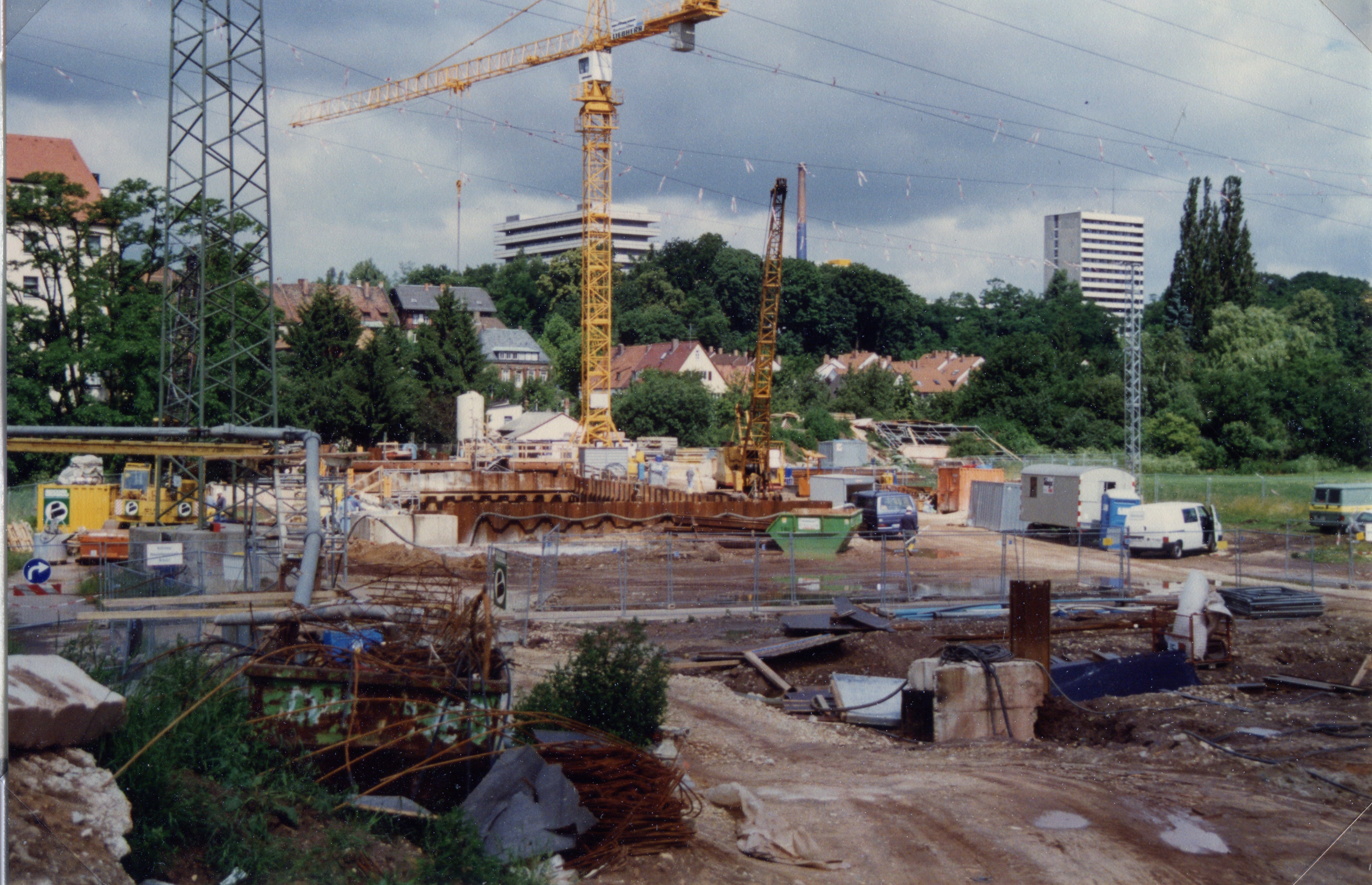 | Beschreibung | Bauarbeiten der U-Bahn im Wiesengrund Blickrichtung Billinganlage / Vacher Straße. Im Hintergrund Gebäude vom Stadtkrankenhaus im November 1996 | ||