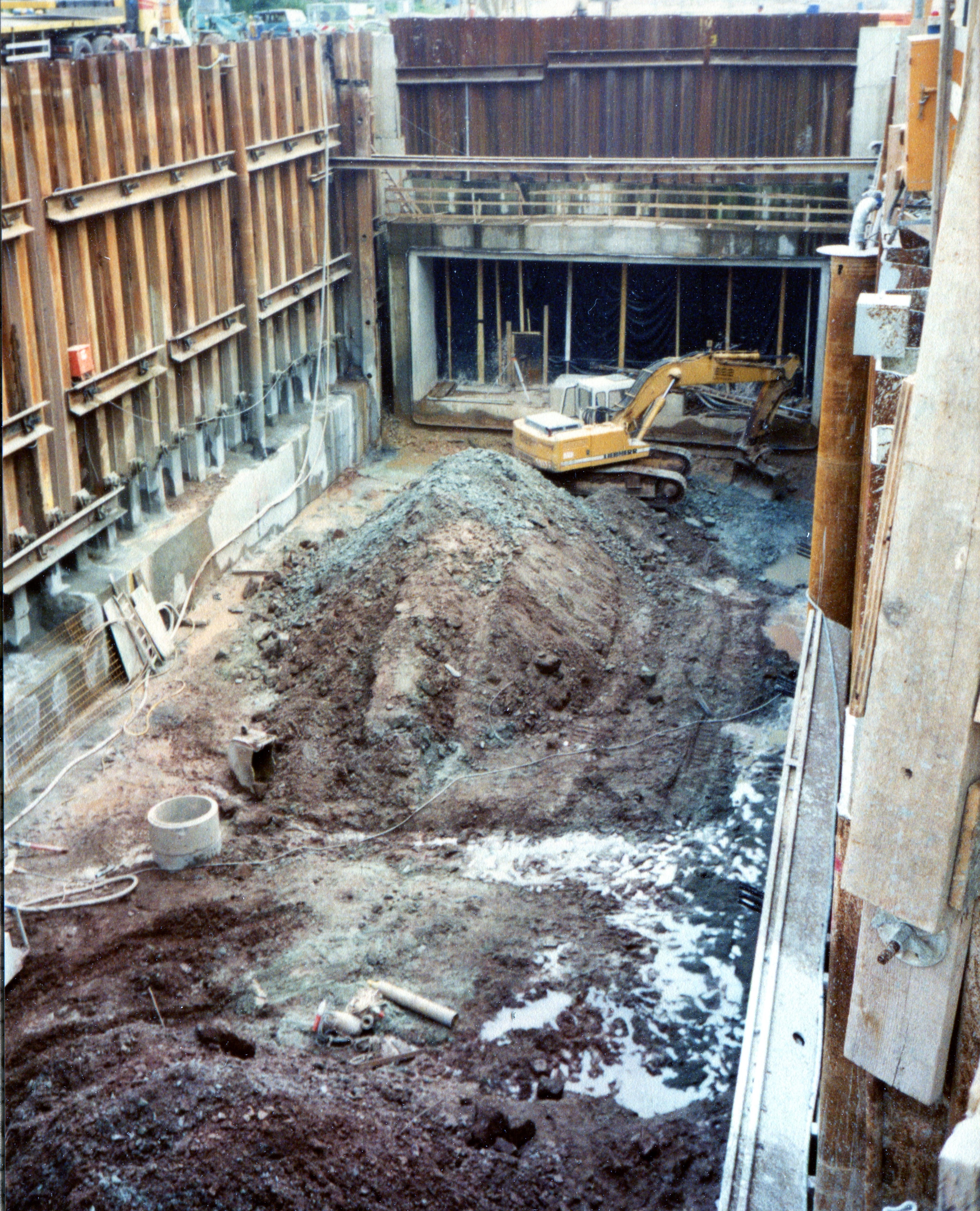 | Beschreibung | Bauarbeiten und Baugrube U-Bahnhof Stadthalle im September 1996 | ||