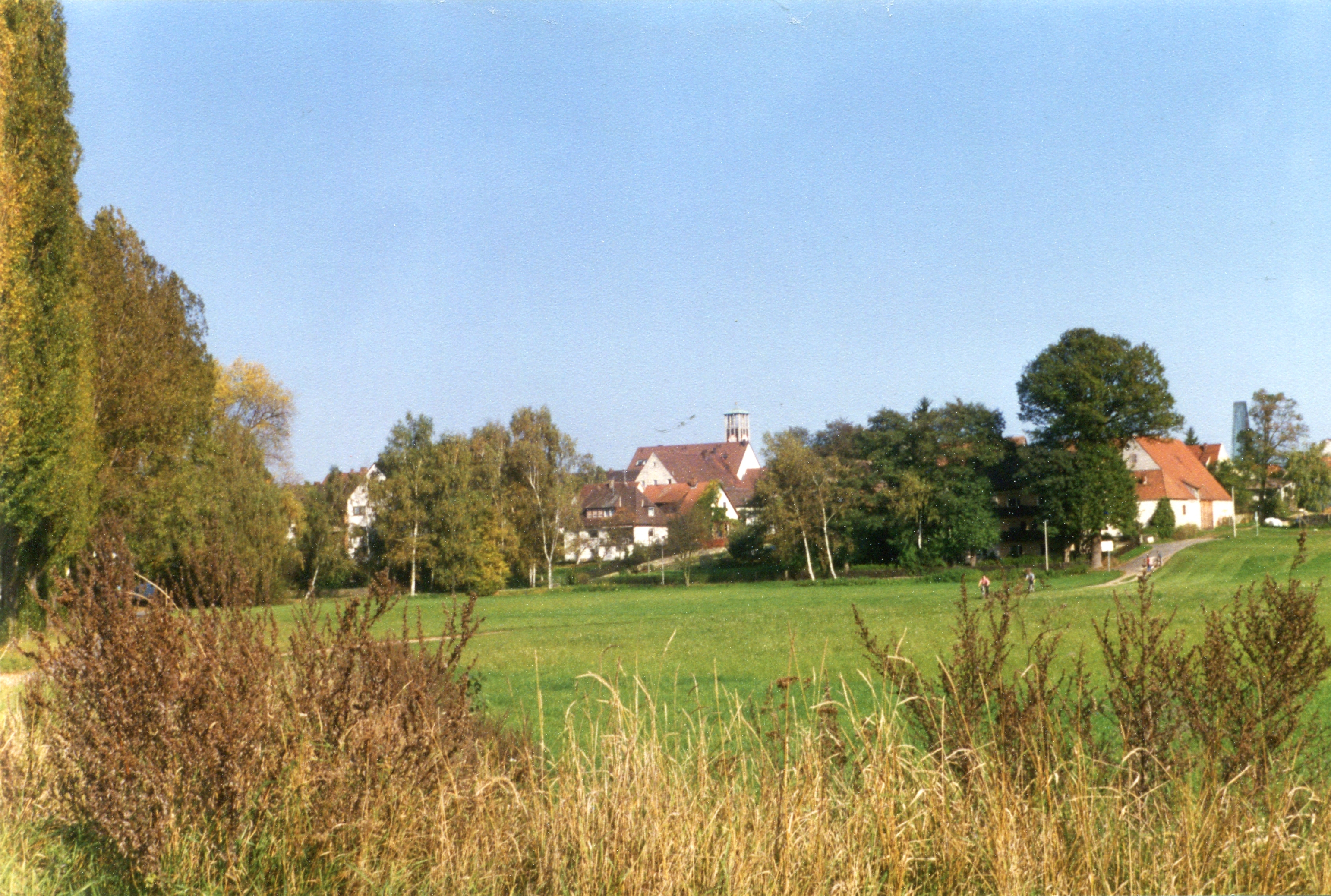 | Beschreibung | Blick vom Wiesengrund auf Gebäude Partie unterhalb der Romminggasse und Fischerberg mit Fuß- und Radweg - links die Pappel Alle an der Stadelner Straße (Panzerstraße), 1996 | ||