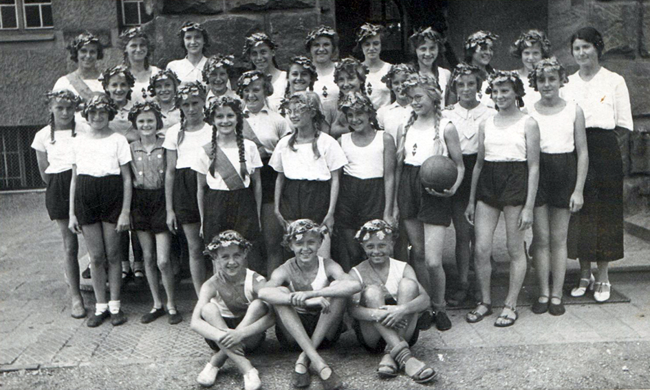| Beschreibung | Alle Siegerinnen des Schulwettbewerbs am Lohnert-Sportplatz, Schüllerinnen der Pestalozzischule, ca. 1937 | ||