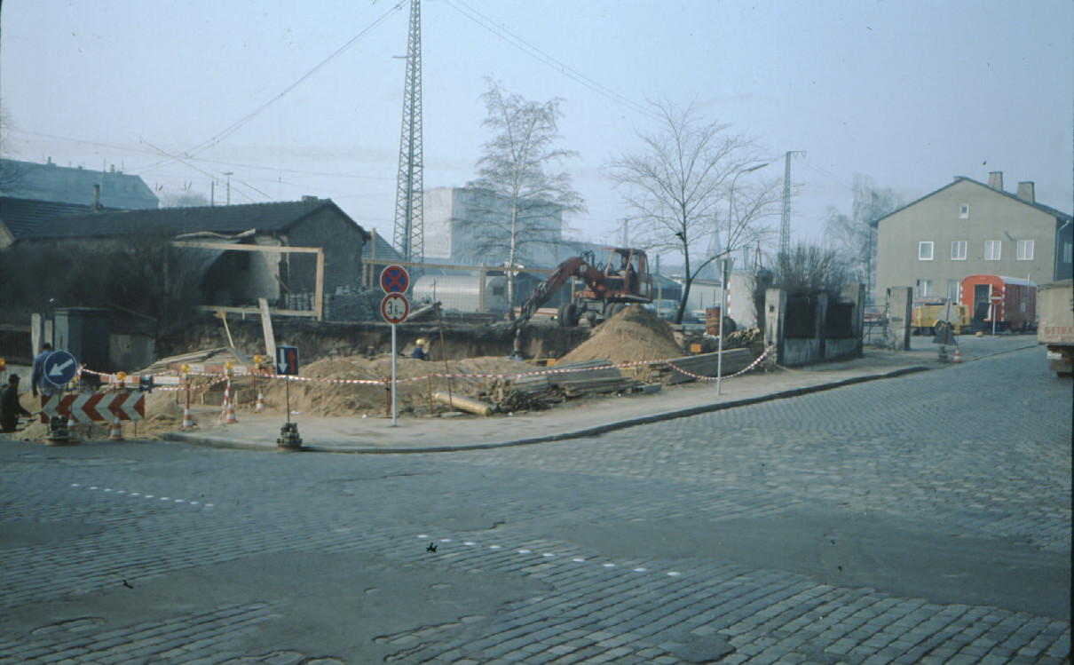 | Beschreibung | vorbereitende Tiefbauarbeiten in der Gebhardtstr. für U-Bahnbau, Einmündung zur Jakobinenstraße, im Hintergrund das Zollamt, Mai 1979 | ||