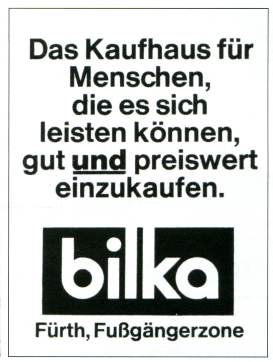 Werbung 1979 des ehemaligen Kaufhauses Bilka in der Schwabacher Straße 54, dass hier jahrzehntelang bestand..