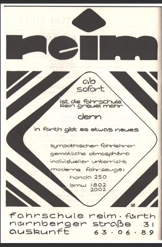 BeschreibungWerbung der Fahrschule Reim in der Schülerzeitung Die Pennalen Nr. 1 1976