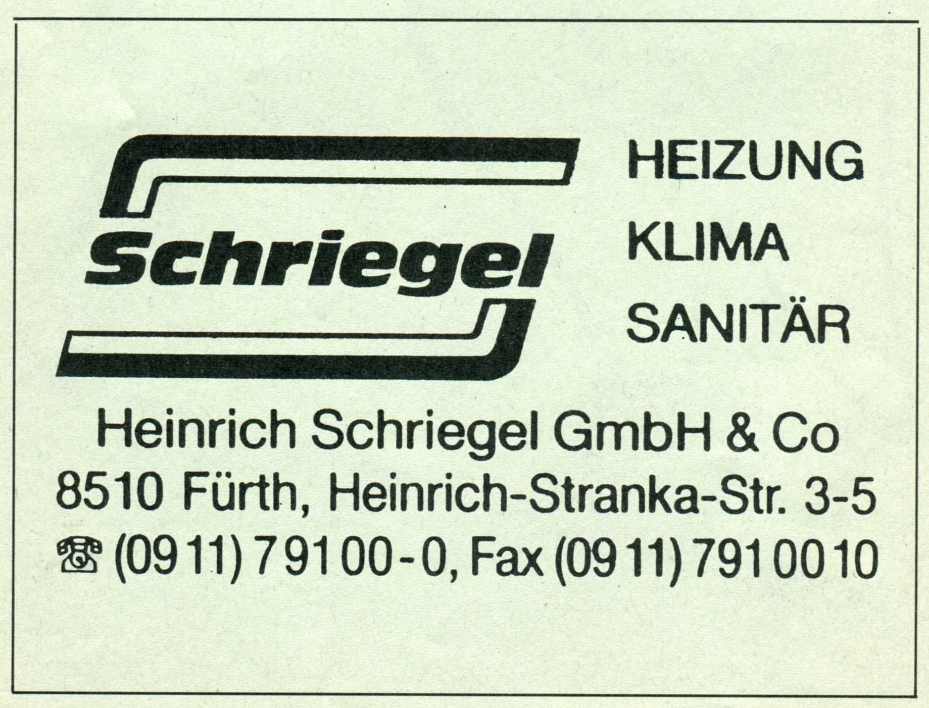 | Beschreibung | Werbung Firma Schriegel von 1991 | ||