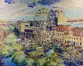 Lizenz: cc-by-sa-4.0Ludwigsbahnhof - und rechts unten der erste Zeitungskiosk Fürths von Fritz Schneider, ca. 1935 Urheber: unbekannt