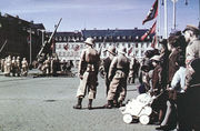 Lizenz: Bildlizenz-StadtarchivAufmarsch des Afrika Korps auf dem Schlageterplatz 1941 mit Flakgeschützen. Urheber: unbekannt