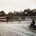 Lizenz: cc-by-sa-3.0Schlageterplatz um 1942, im Hintergrund das Parkhotel noch ohne Kriegsschäden. Urheber: unbekannt