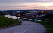 | Aussicht vom Solarberg auf Atzenhof mit Main-Donau-Kanal im Vordergrund. |