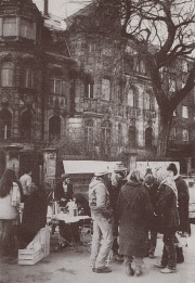 Lizenz: cc-by-sa-3.0"Kältefrühstück" am 24. Januar 1981, dem Samstag nach dem Auszug der "Instandbesetzer" aus der Villa ... "Kältefrühstück" am 24. Januar 1981, dem Samstag nach dem Auszug der "Instandbesetzer" aus der Villa Königswarterstraße 20.