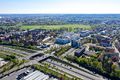 Lizenz: cc-by-sa-3.0Blick über Kavierlein und Espan, Bildmitte das Kinderheim St. Michael - rechts daneben die Grund- ... Blick über Kavierlein und Espan, Bildmitte das Kinderheim St. Michael - rechts daneben die Grund- und Mittelschule Pestalozzistraße, dahinter das Brauhaus Nürnberg, Abteilung Fürth (vormals Brauerei Evora und Meyer), im Hintergrund die Spielvereinigung mit der alten Haupttribüne, ca. 1951