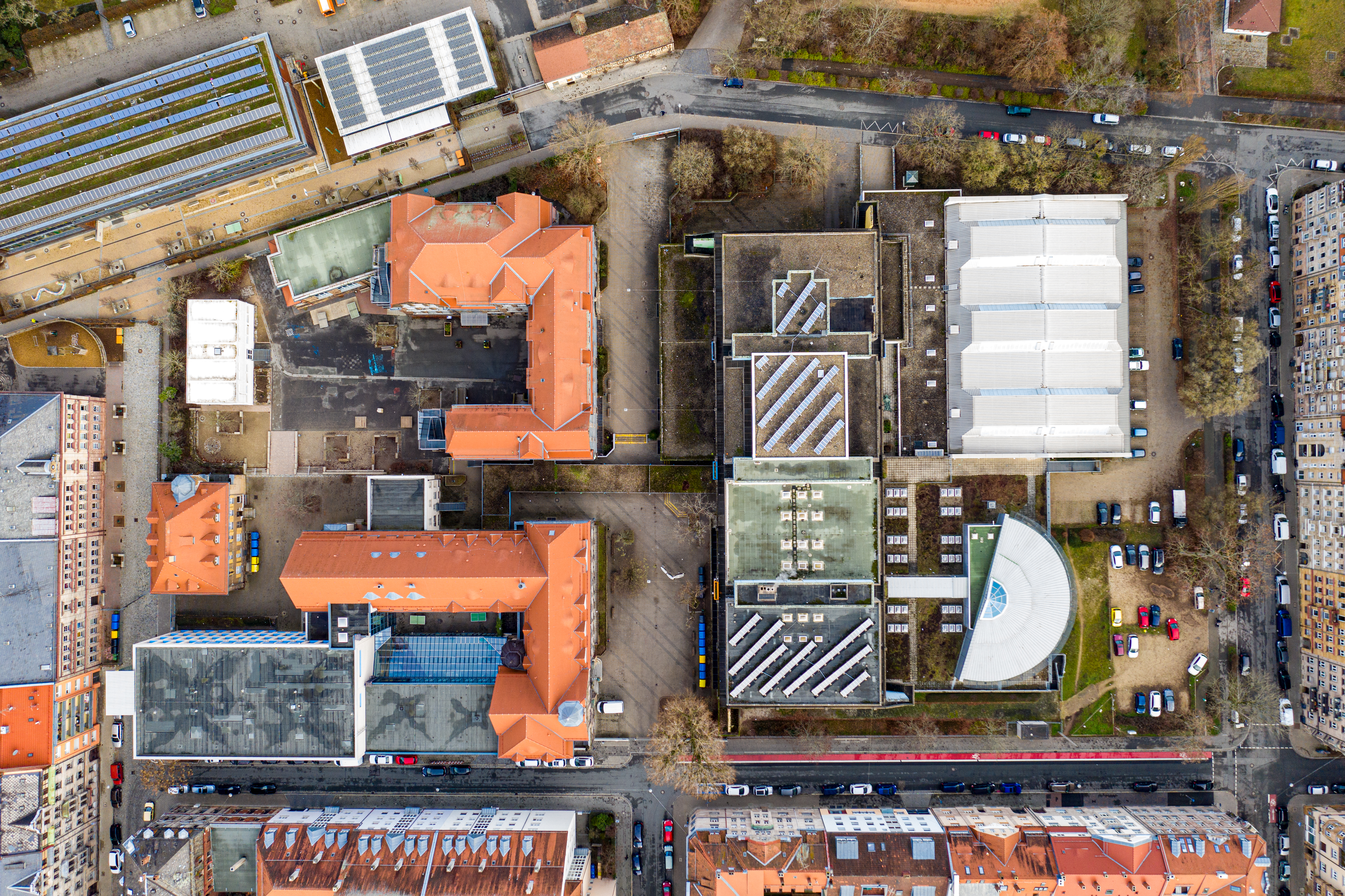| Beschreibung | Blick auf das Schulgelände an der Sigmund-Nathan-Straße und Otto-Seeling-Promenade, Jan. 2020 | ||