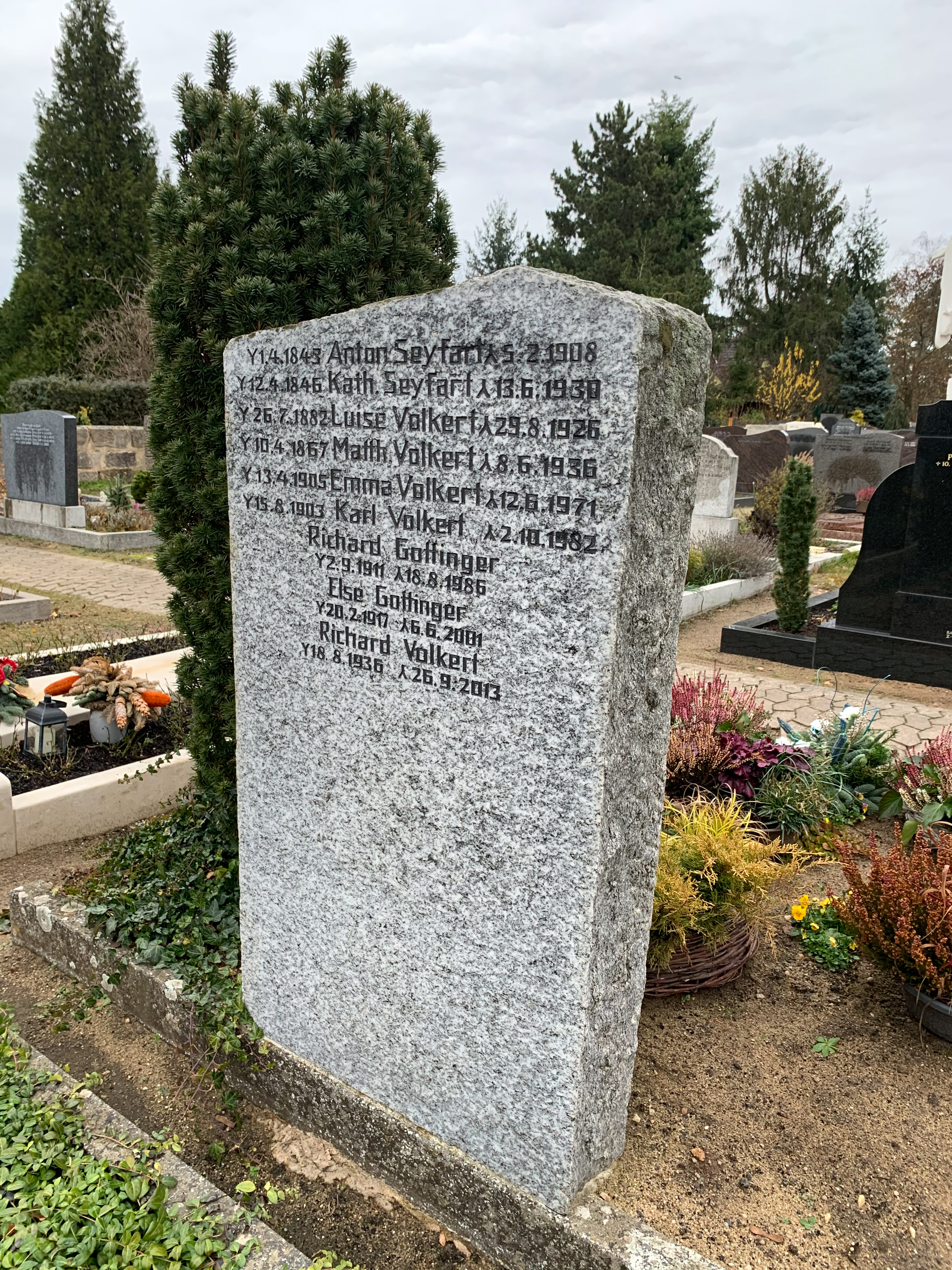 | Beschreibung | Grabstein des ehem. NSDAP-Funktionärs und Kreisleiters Karl Volkert, Dezember 2019 | ||