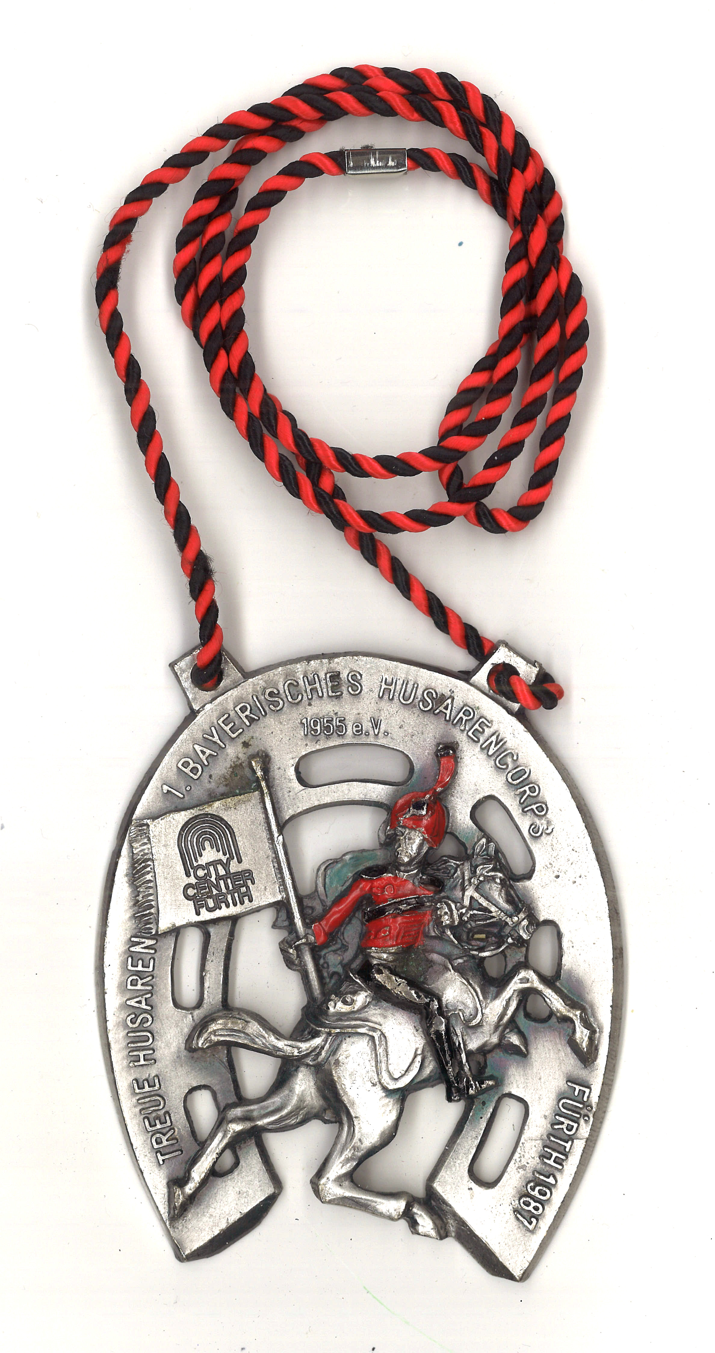 | Dateiinfo (Bild-Unterschrift und Info-Box, automatisch erstellt) | Sessionsorden der THF, Saison 1987, Metall, Motiv „City Center Fürth“ Urheber: Treue Husaren Fürth<br><br>Lizenz: CC BY-SA 3.0 | ||