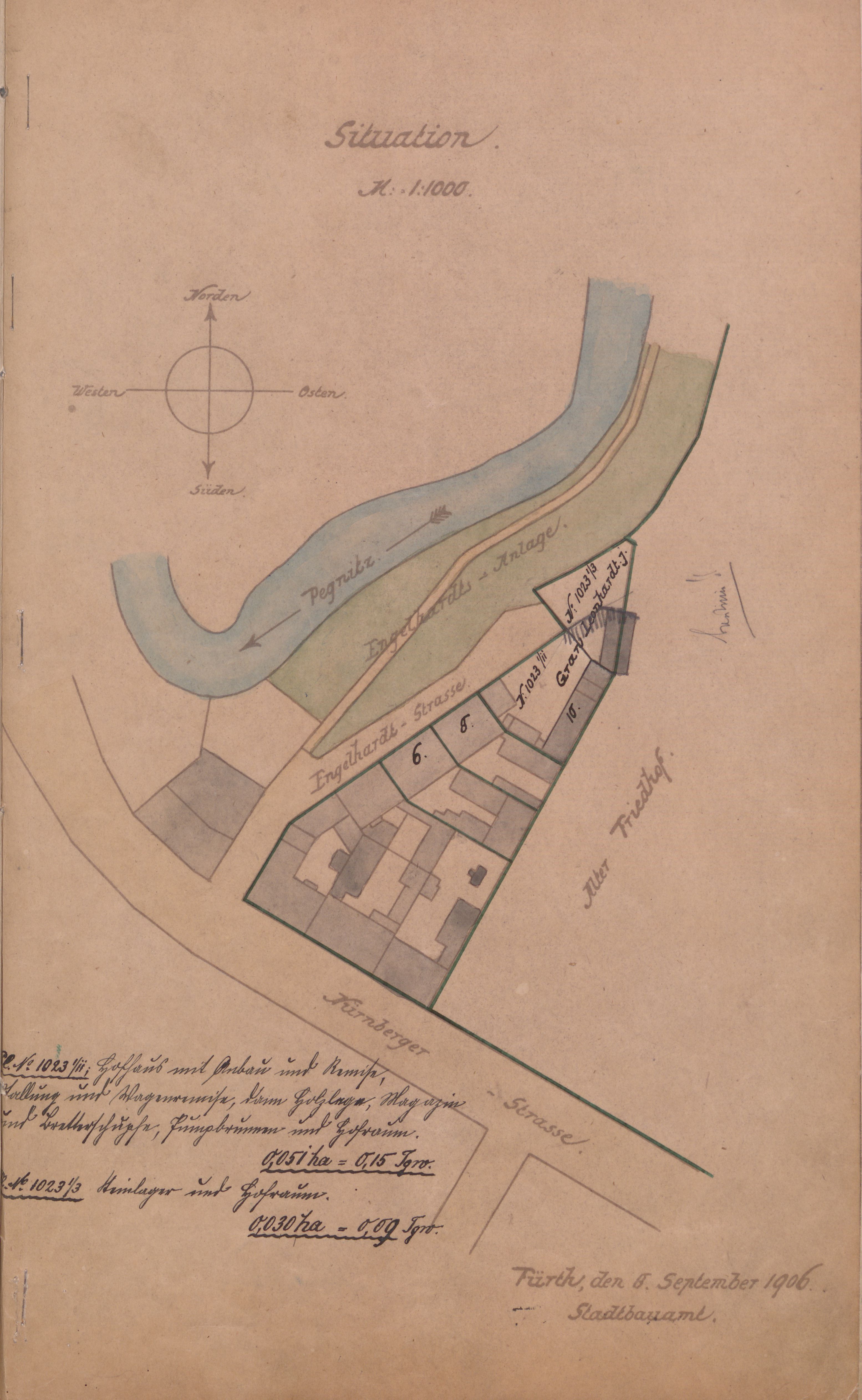 Lageplan Engelhardtstraße, Sept. 1906; Veröffentlichungsgenehmigung durch das Stadtarchiv Fürth vom 12.05.2020