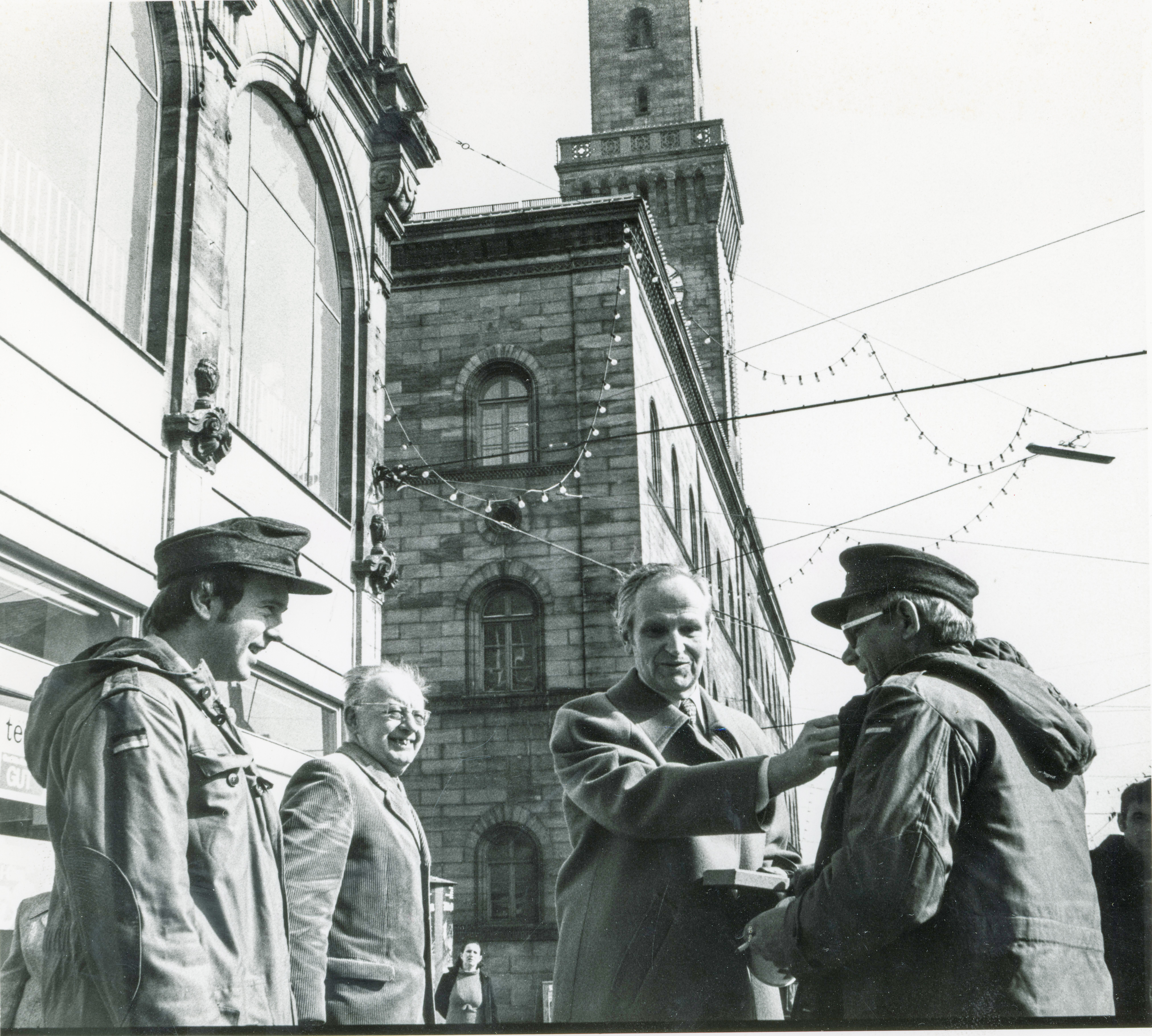 | Beschreibung | Dr. Anton Kaltenhäuser (links) und OB Kurt Scherzer, April 1976 | ||