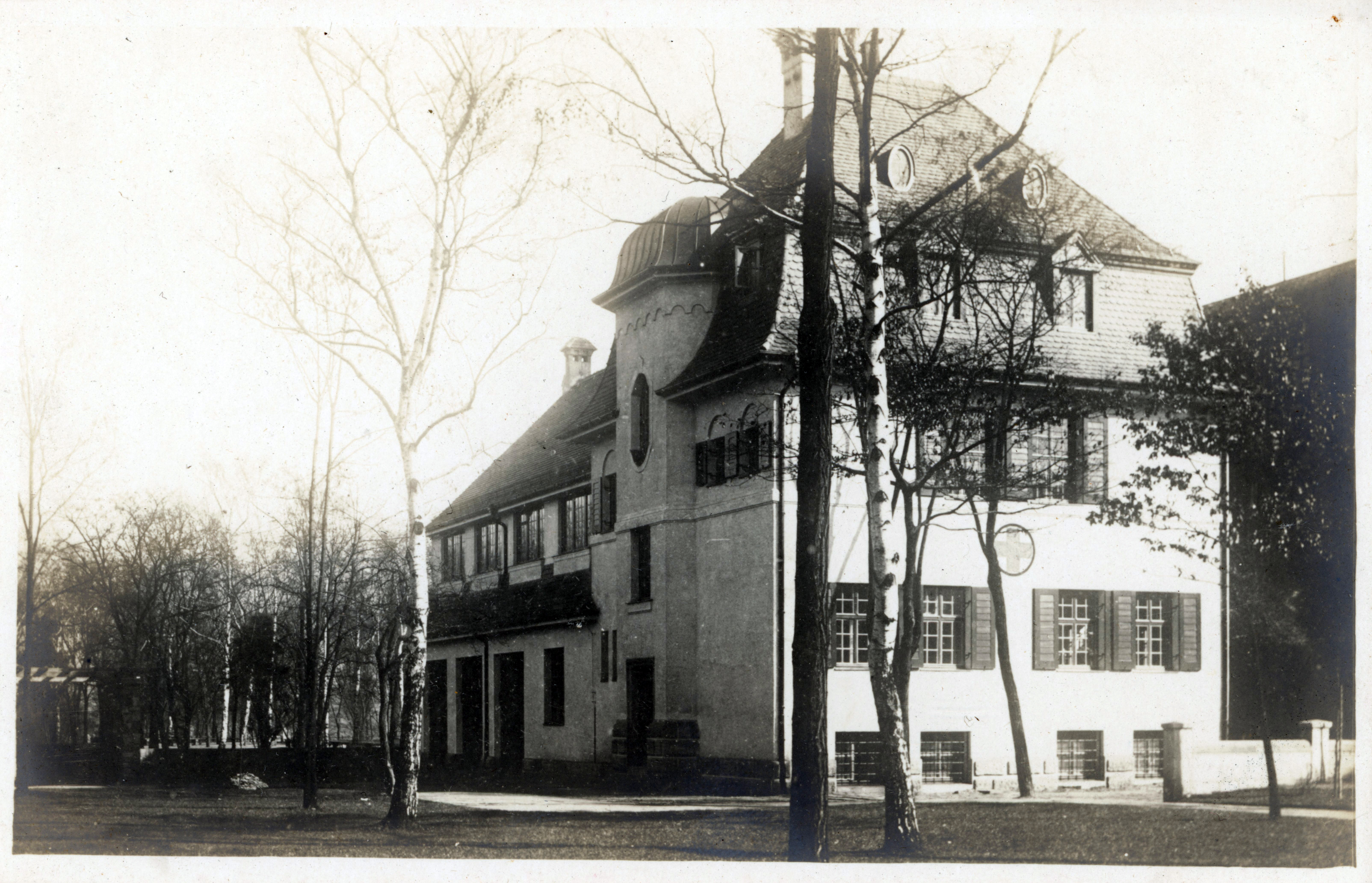 Ehem. Kolonnenhaus bzw. Sanitätskolonnenhaus des Rotes Kreuz Fürth in der heutigen ... Ehem. Kolonnenhaus bzw. Sanitätskolonnenhaus des Rotes Kreuz Fürth in der heutigen Otto-Seeling-Promenade, ngl. ca. 1920<br>Urheber: unbekannt<br>Erstellungsdatum: 1920<br>Lizenz: CC-BY-SA-4.0