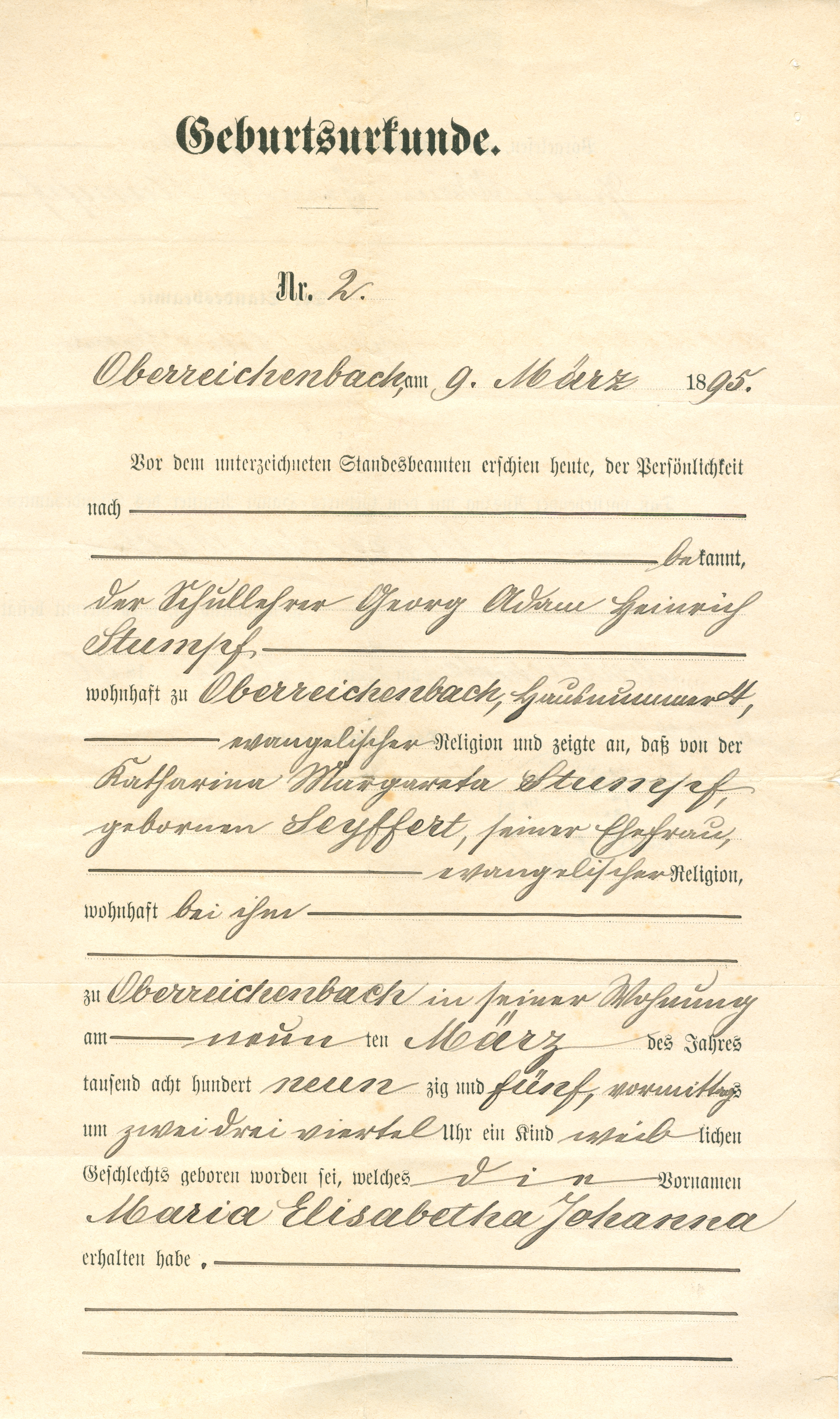 | Datei:Geburtsurkunde Marie Stumpf.jpg | |||