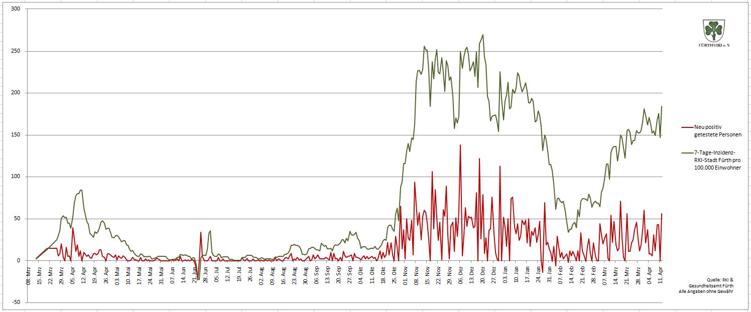 - Das Diagramm setzt sich aus den Daten des Gesundheitsamtes Fürth und den Zahlen des RKI zusammen.