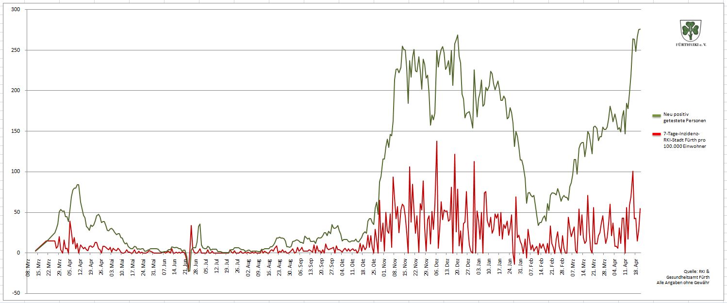 - Das Diagramm setzt sich aus den Daten des Gesundheitsamtes Fürth und den Zahlen des RKI zusammen.