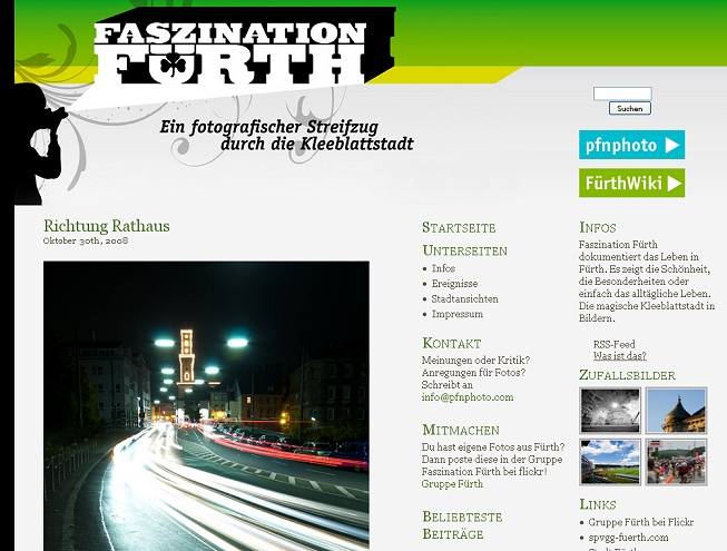 | 15:59, 13. Dez. 2008 | Screenshot Faszination Fuerth.jpg (Datei) | 170 KB | Screenshot: Fotoportal Faszination Fürth. Kategorie:Netzwelt | 1 | |